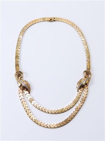COLLIER IN ORO GIALLO E DIAMANTI Anni Quaranta realizzato a maglia piatta e...