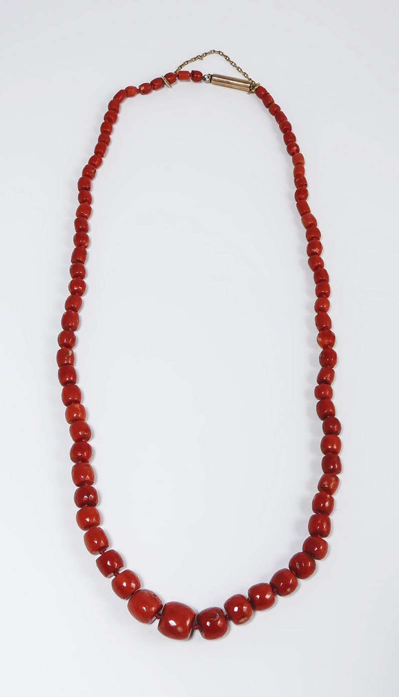 COLLANA IN CORALLO ROSSO GIAPPONESE formata da barilotti sfaccettati scalari,...