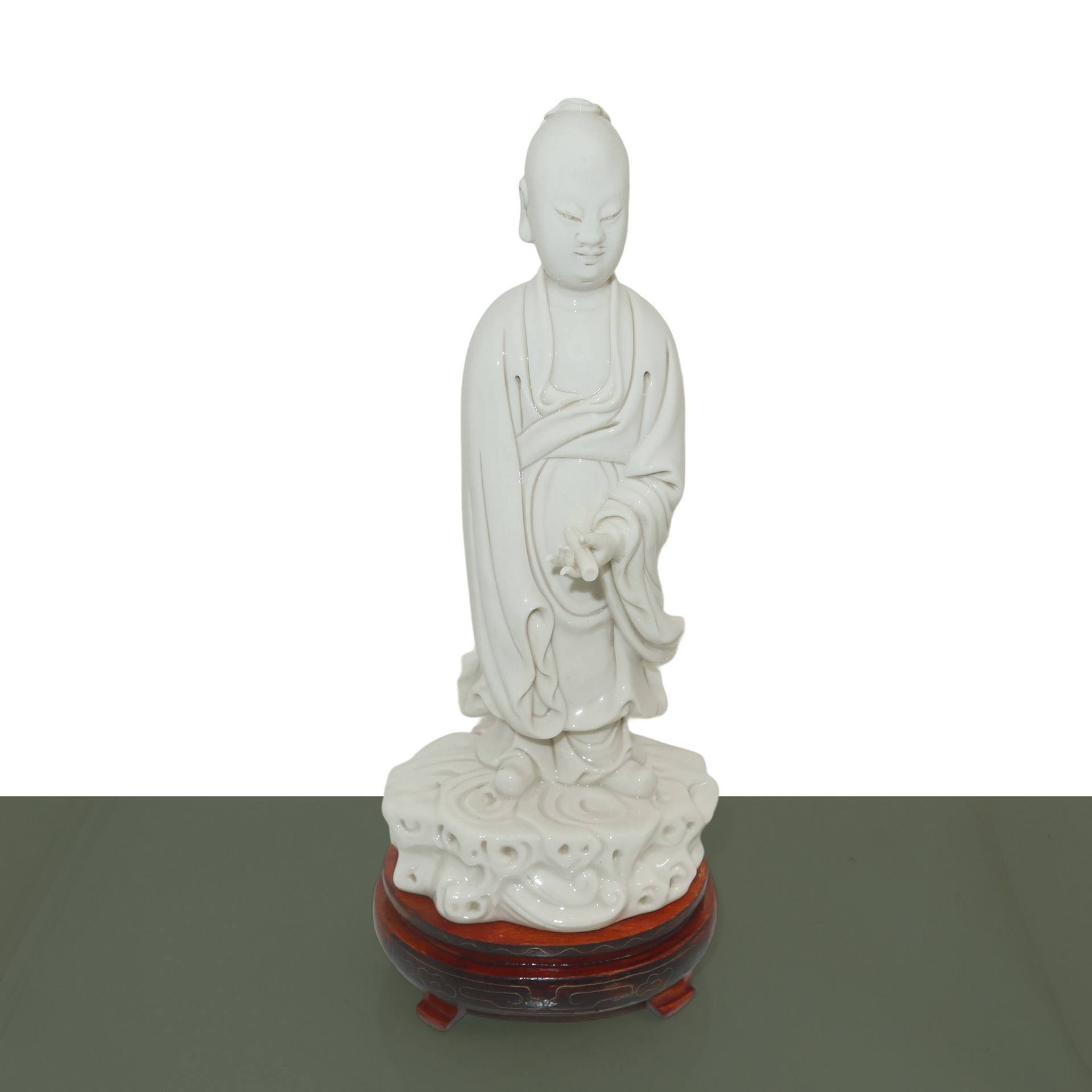 Scultura in ceramica Dehua raffigurante uomo, Qing , Dinastia, 19° secolo, Cina h 29 x 12 cm
