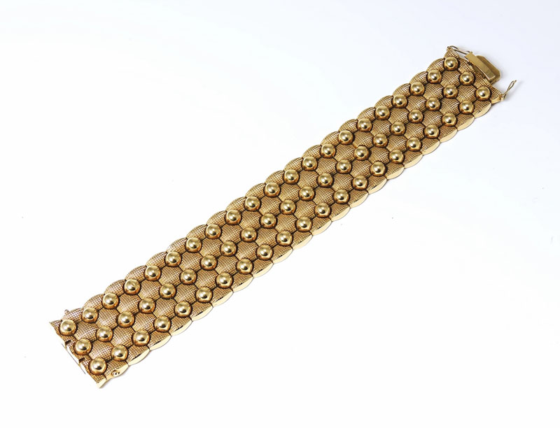 BRACCIALE IN ORO GIALLO Anni Cinquanta realizzato con motivo di semisfere...