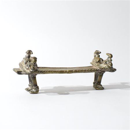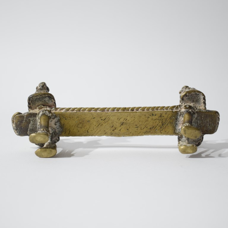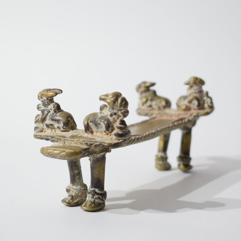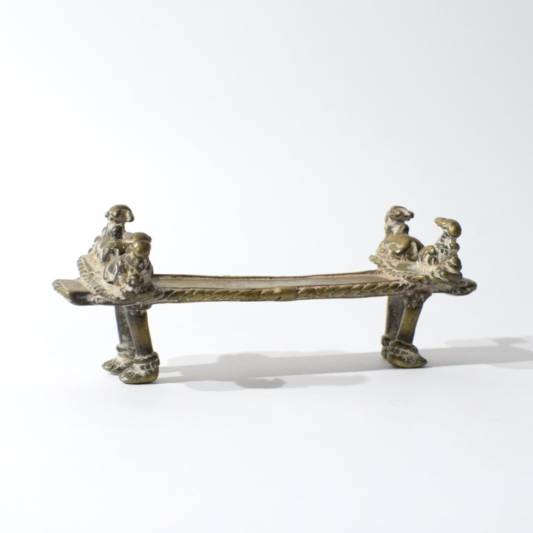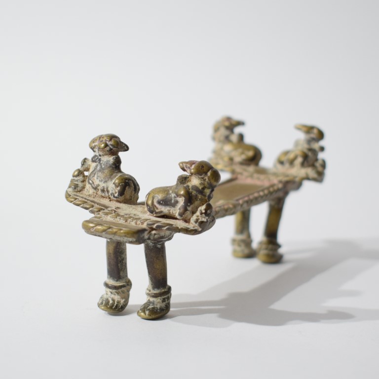 Oggetto rituale in bronzo a cera persa, con struttura quadrangolare sorretta da quattro figure di Nandi, il toro sacro e vahana (veicolo) del dio Shiva.