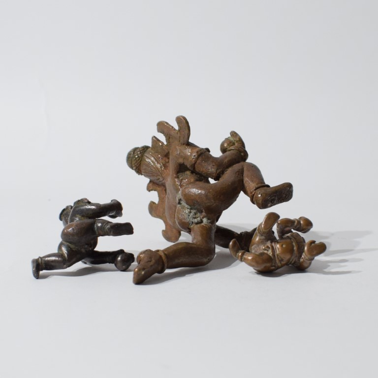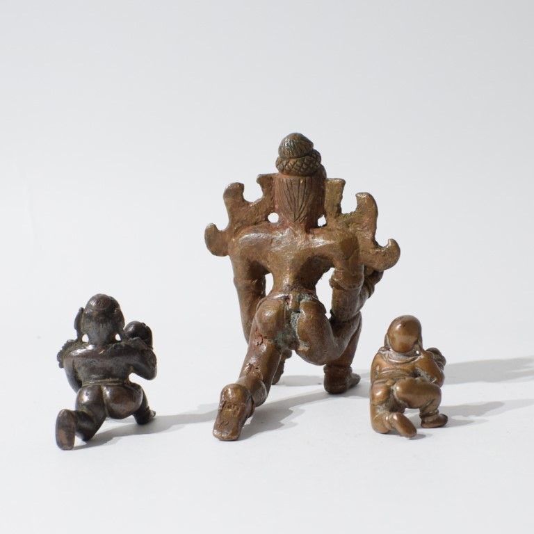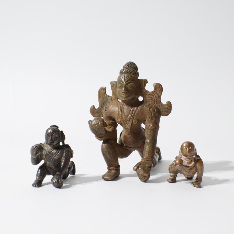 Lotto di tre bronzi devozionali raffiguranti Krishna bambino