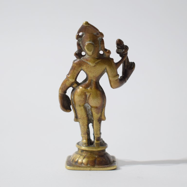 Bronzo devozionale raffigurante Shri Devi con fiore di loto