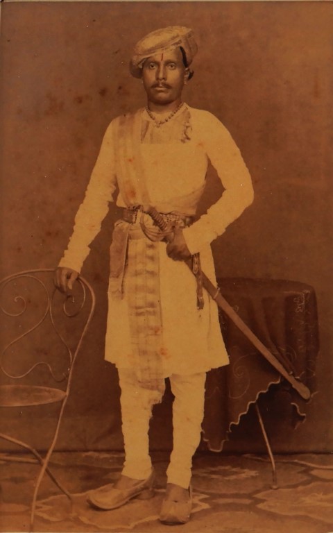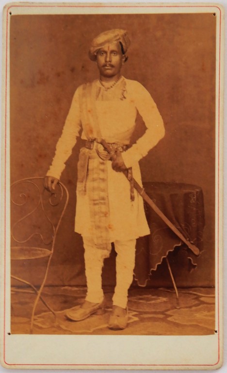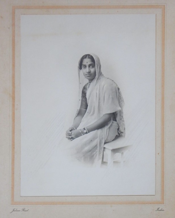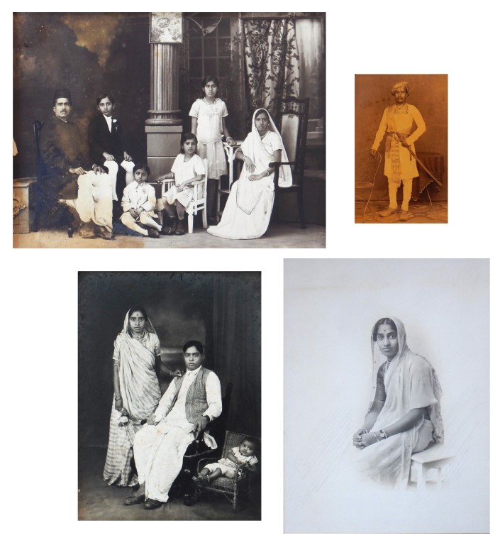 quattro fotografie ai sali d'argento in bianco e nero. Due sono ritratti singoli di donna e notabile stante con spada. Due sono ritratti collettivi di famiglie tradizionali. Entro Passe-partout.