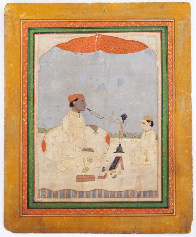 Ritratto di sovrano che fuma la huqqa