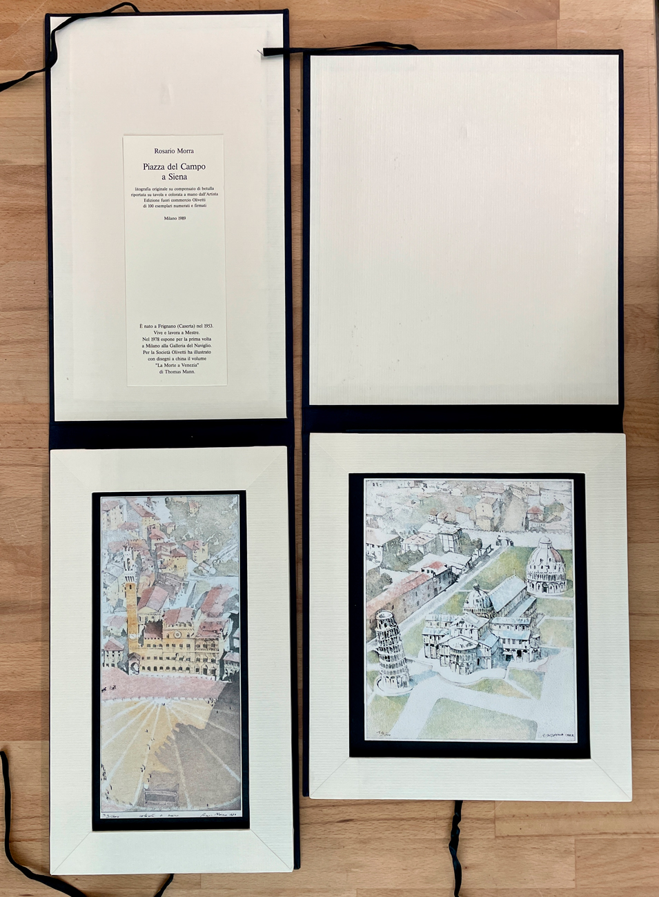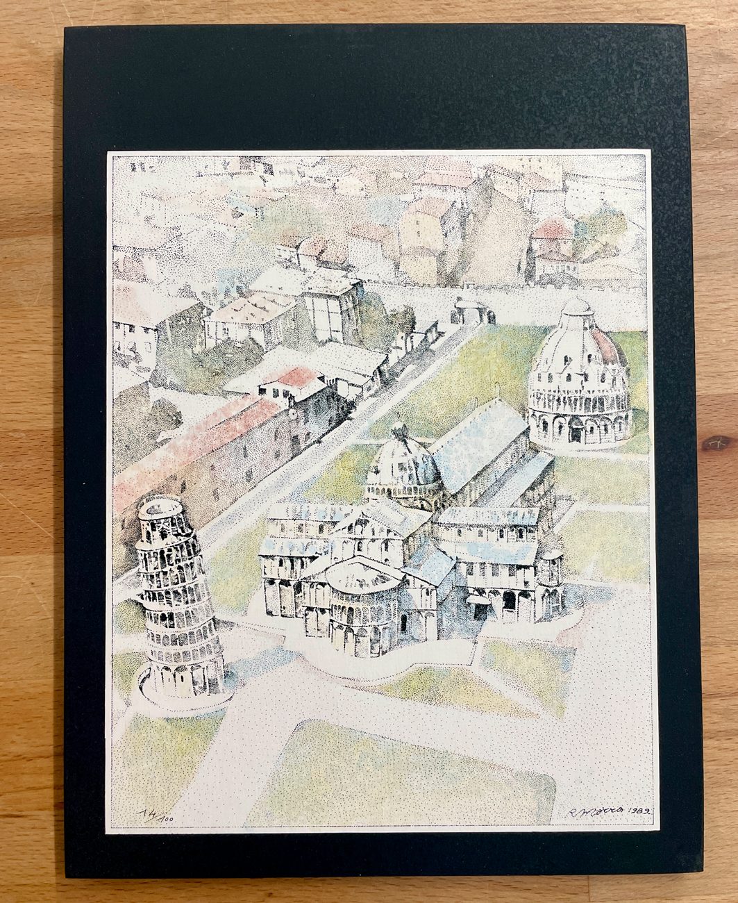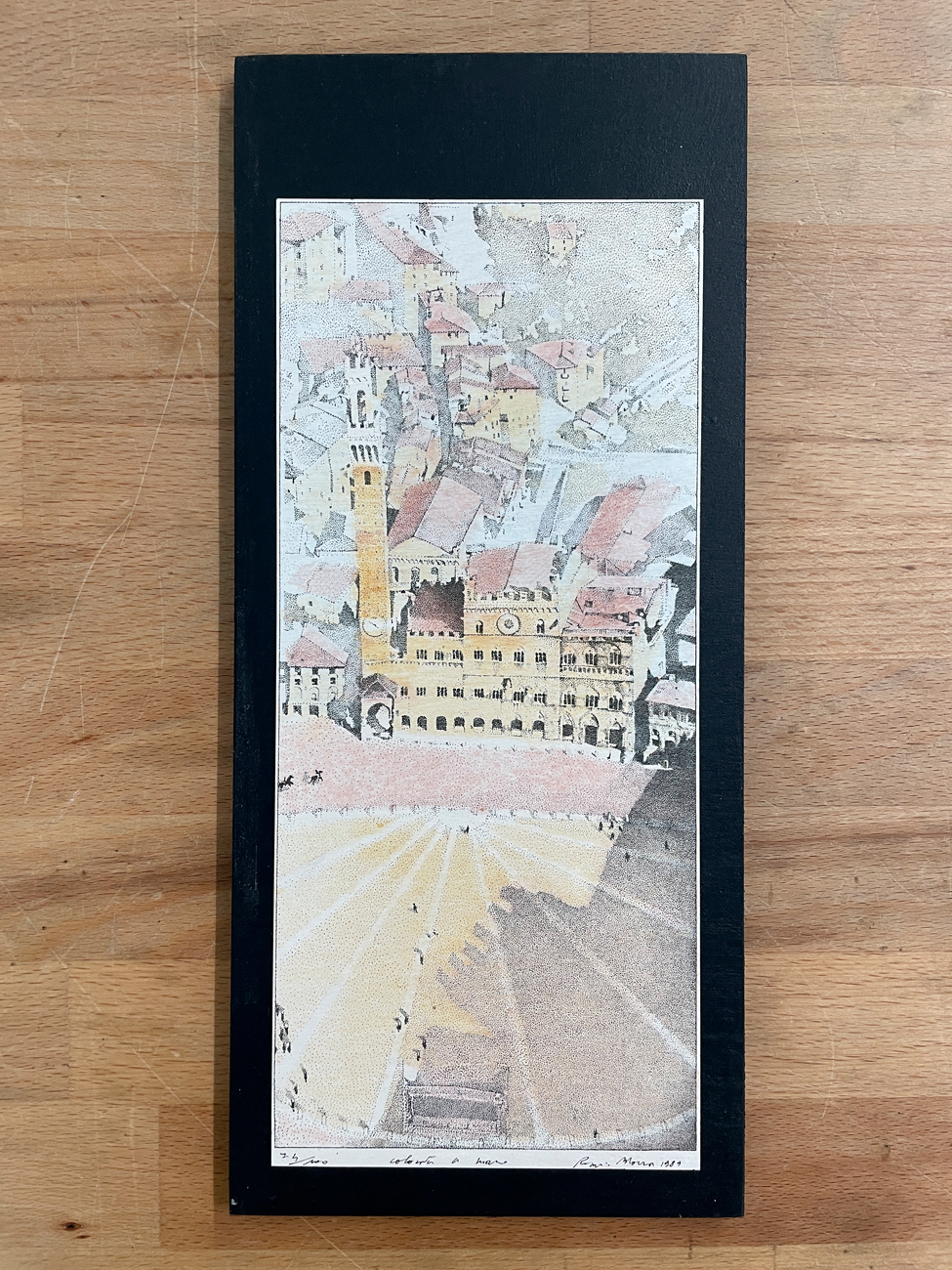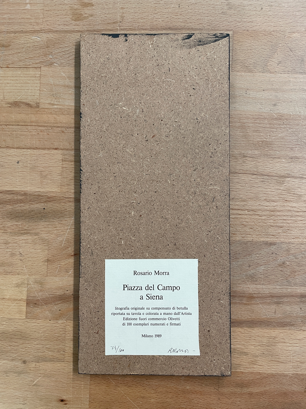 Litografia su compensato di betulla riportata su tavola e colorata a mano dall'Artista Rosario Morra, recante firma e numerazione (Esemplare 74/100) al retro