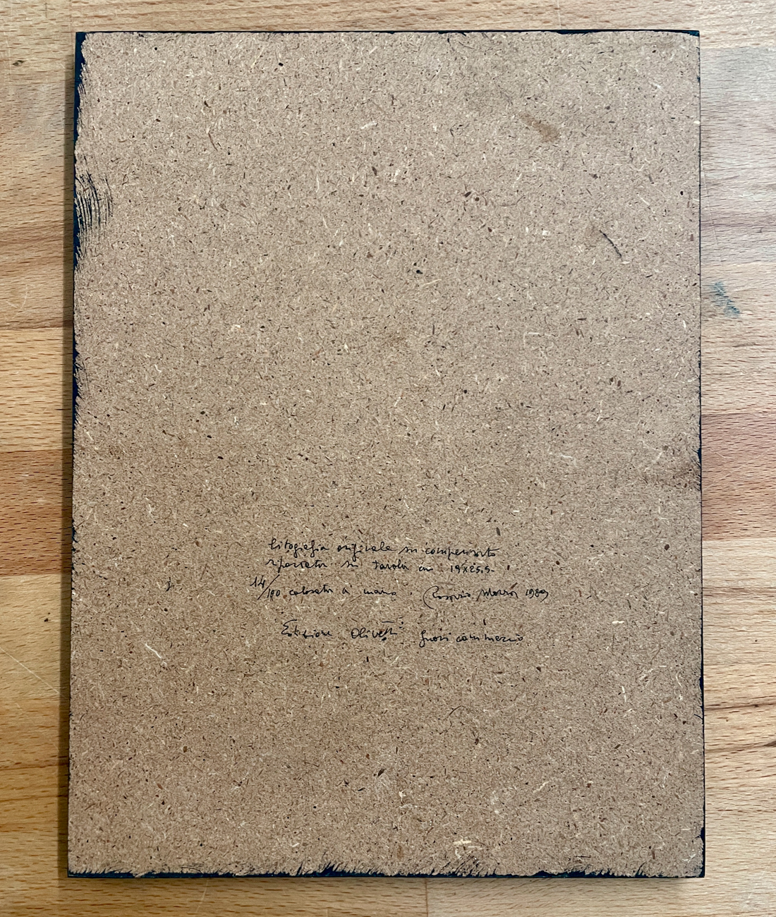 Litografia su compensato di betulla riportata su tavola e colorata a mano dall'Artista Rosario Morra, recante firma, datazione, numerazione (Esemplare 14/100), misure e informazioni tecniche al retro