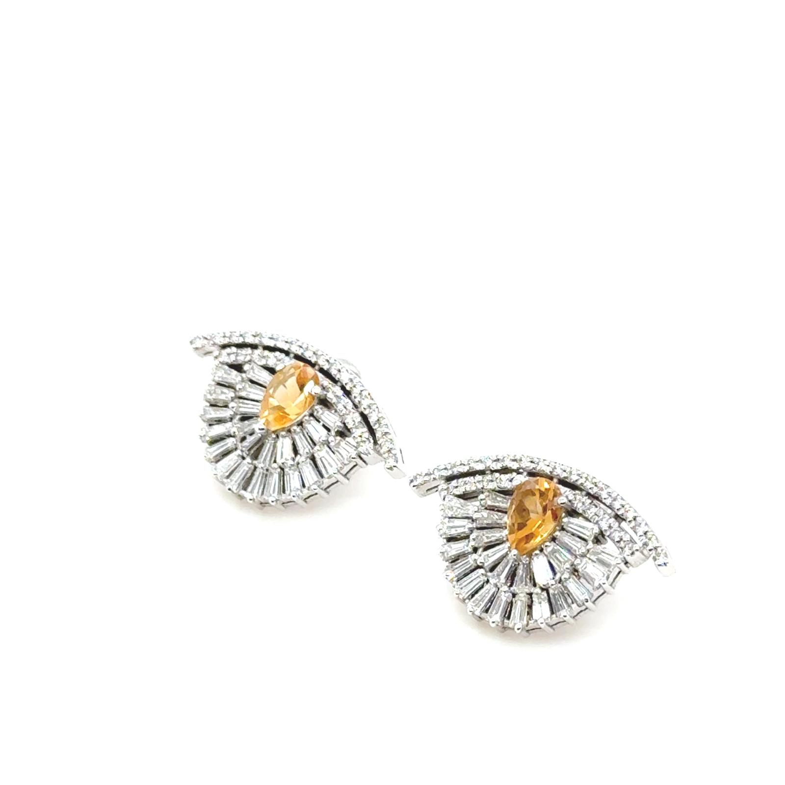 ORECCHINI IN ORO BIANCO 14K 6.04 GR CON QUARZO CITRINO DA 1.00 CT CON DIAMANTI NATURALI 1.70 CARATI COLORE F-G/ PUREZZA VSI CERTIFICATO GEMMOLOGICO MAROZ DIAMONDS LTD MEMBRO ISRAEL DIAMOND EXCHANGE - DH-E305 - COMMISSIONE D’ASTA 25%