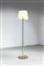 Struttura in ottone, vetro molato e paralume in tessuto.