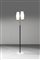Struttura in metallo verniciato, ottone e diffusori in vetro opalino.
