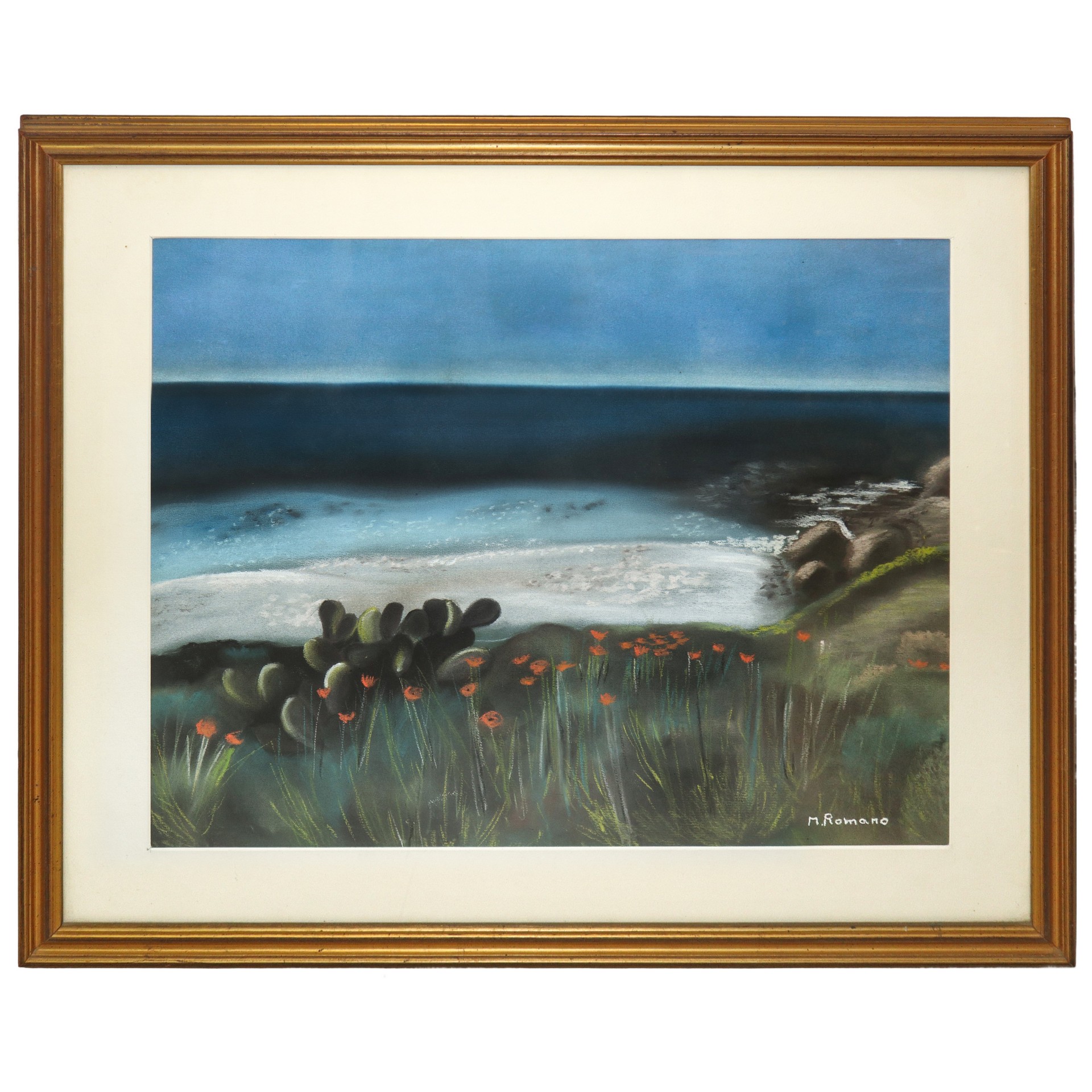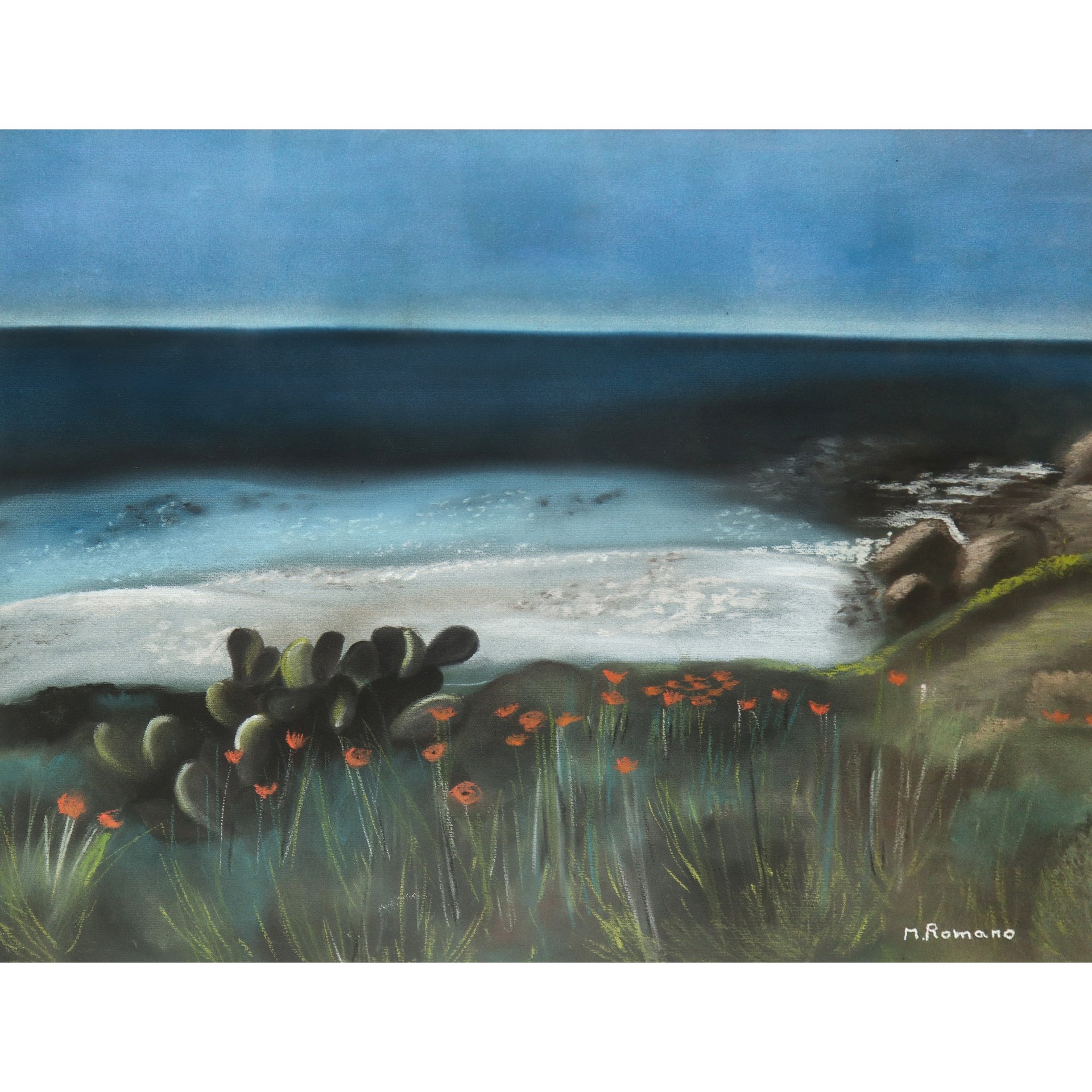 Lot 136 | Mario Romano (Cilento XX secolo) - Scogliera marina con fichi d'India e papaveri
