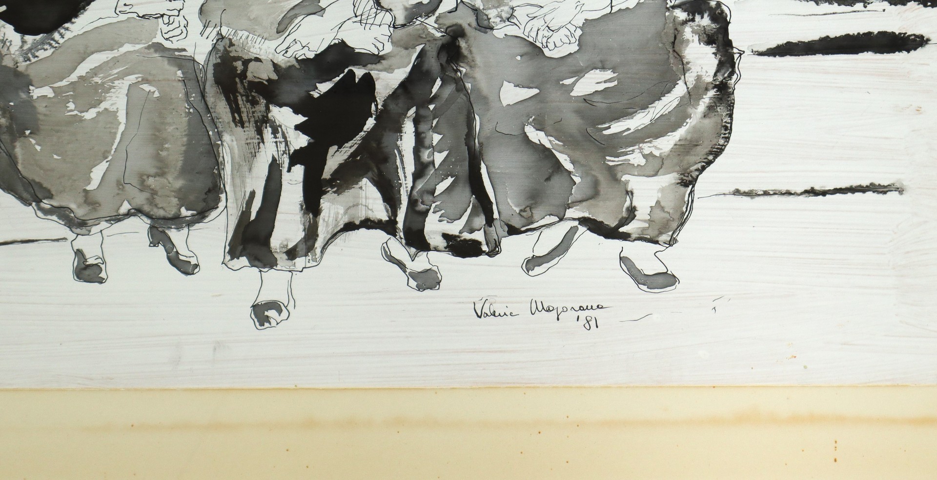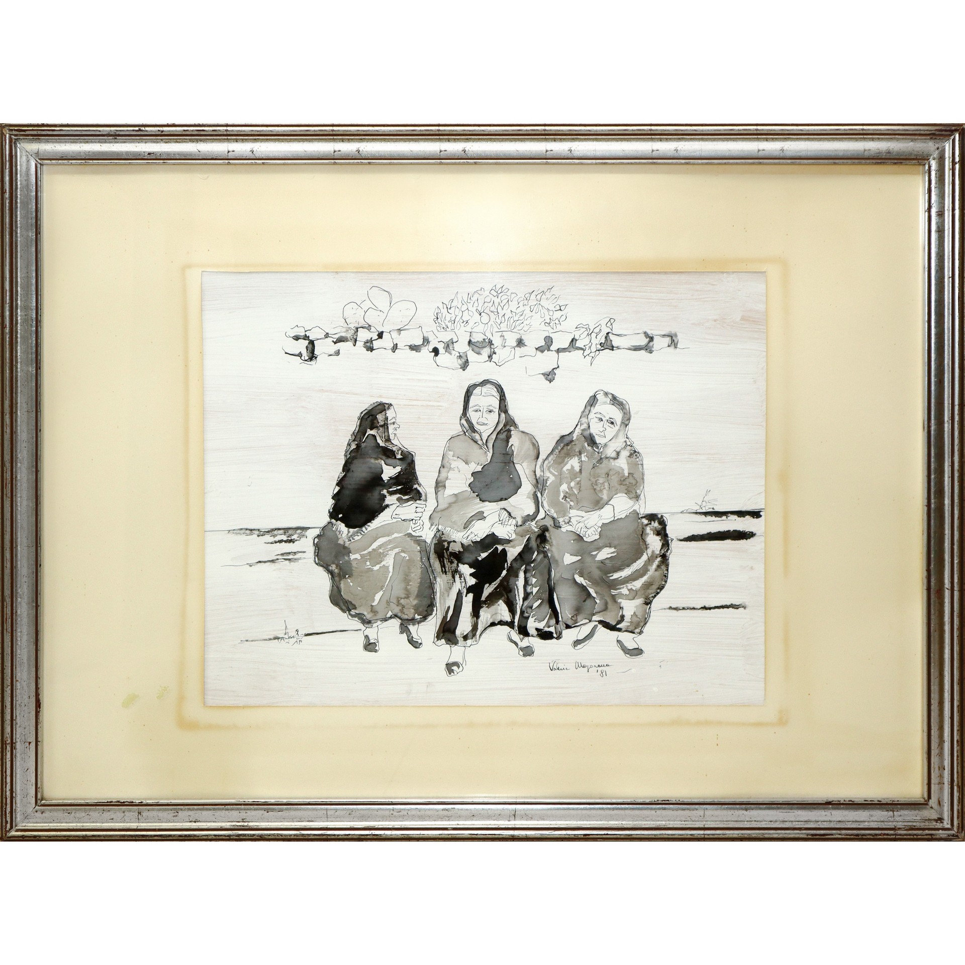 Anziane con fichi d'india h cm 44X33,5 in cornice h cm 75X55,5 Disegno a china su carta Firmato Valeria Majorana Catania