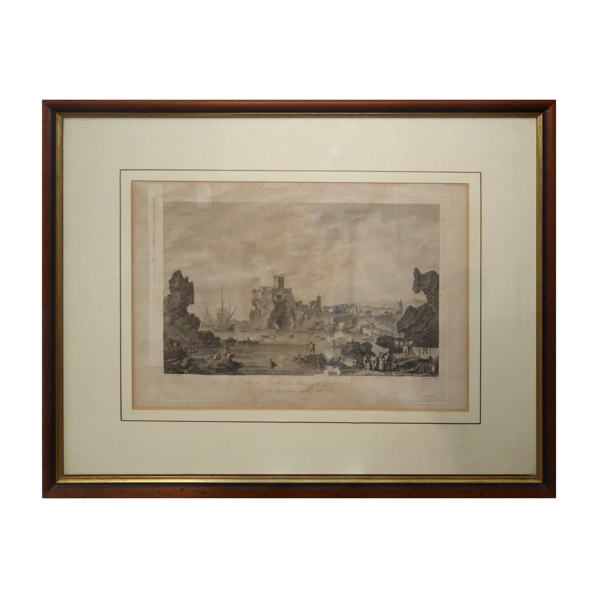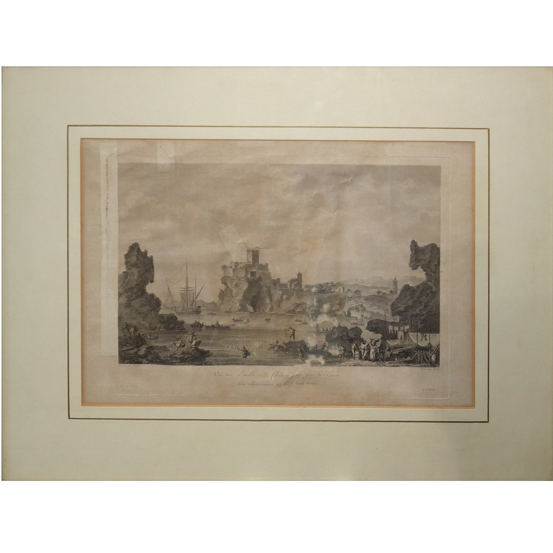Saint-Non - Vista del castello di Aci (Catania) incisione tratta dal "Voyage pittoresque des isles de Sicile, de Malte et de Lipari" cm 29X43 in cornice 49X64
