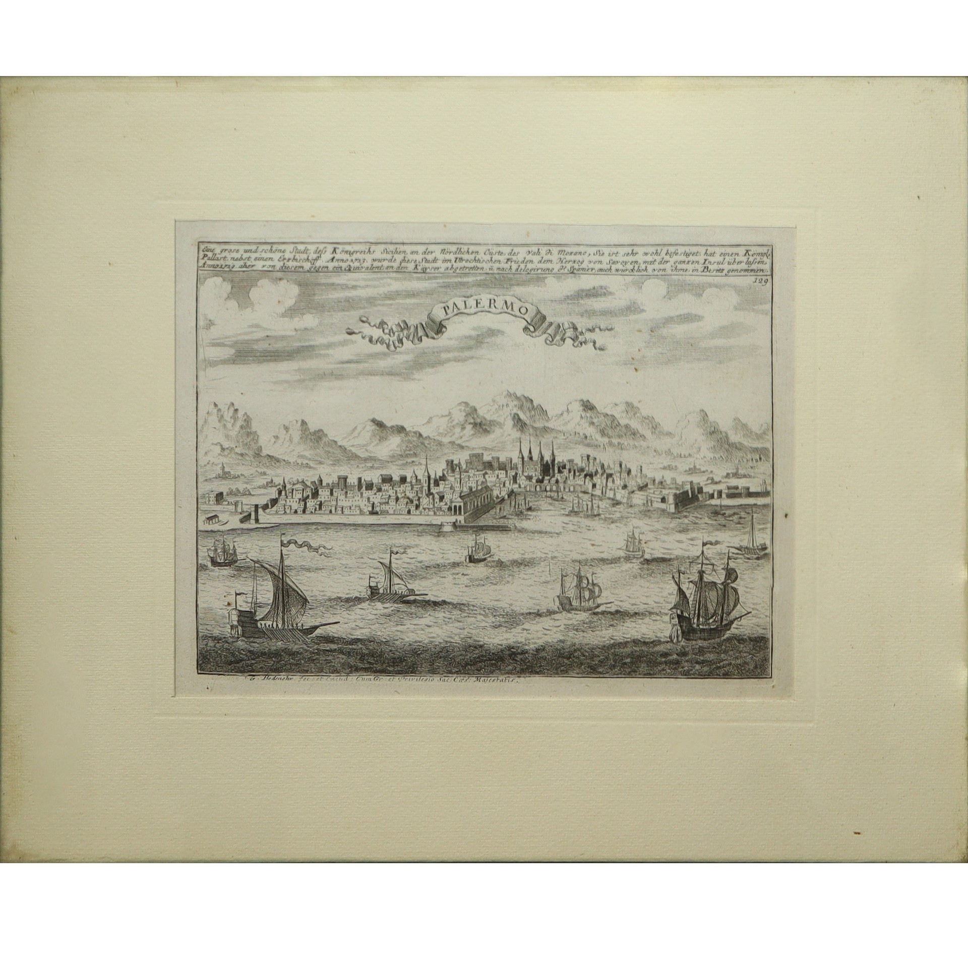 Gabriel Bodenehr (Augusta 1664 - 1765) - Porto di Palermo h mm 165X200 in cornice h cm 28X35