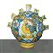 Ernesto Boria - Borraccia in maiolica di Caltagirone smaltata e dipinta policroma con pavone sul fronte, 20° secolo