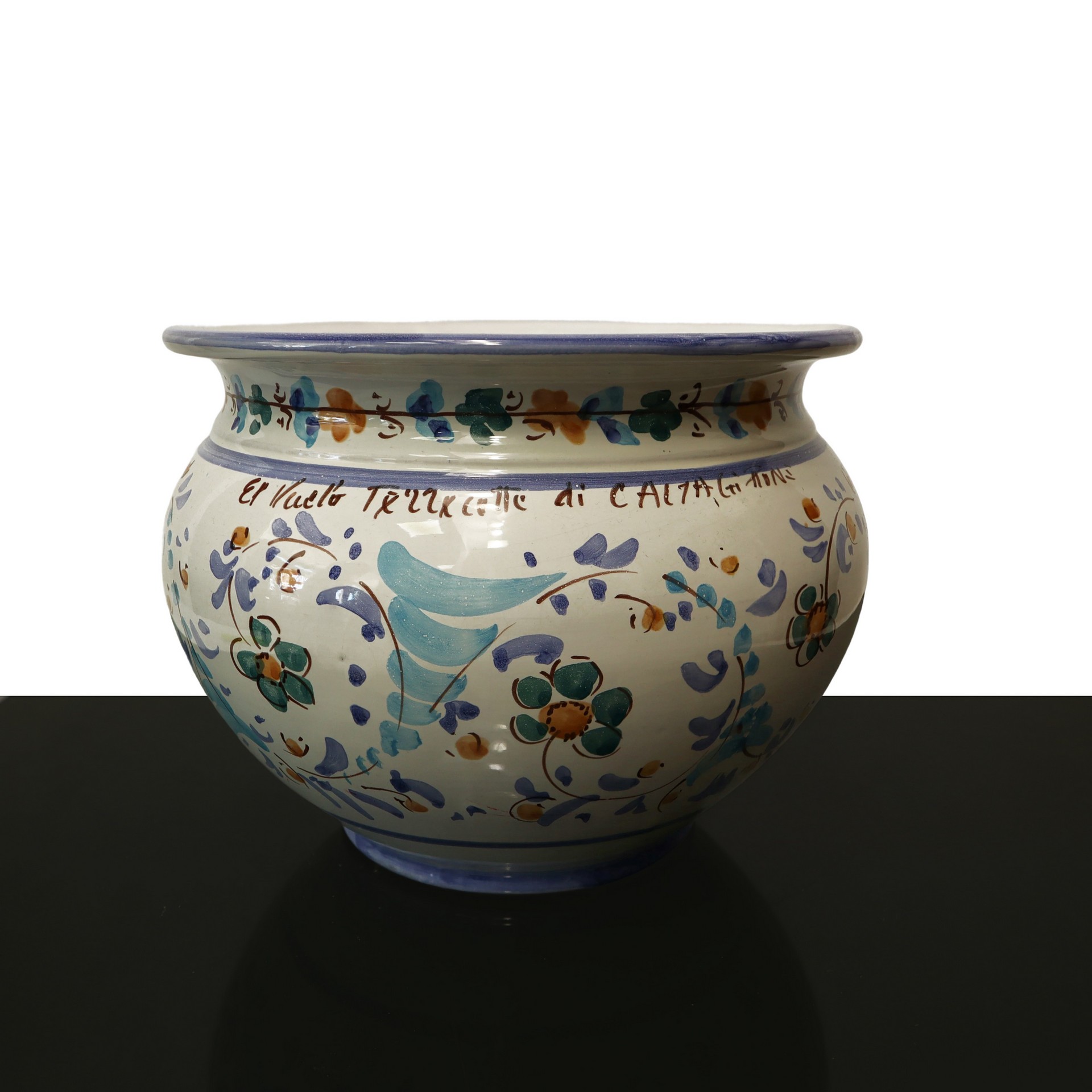El Vuelo Terracotte di Caltagirone - Cachepot in ceramica policroma decorata a fiori di Caltagirone