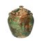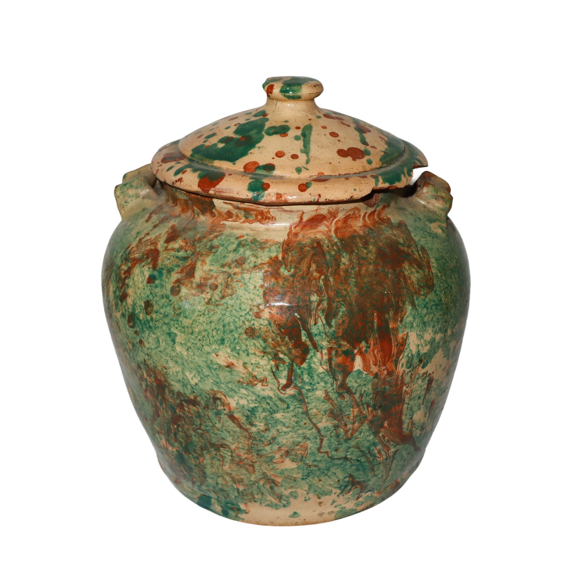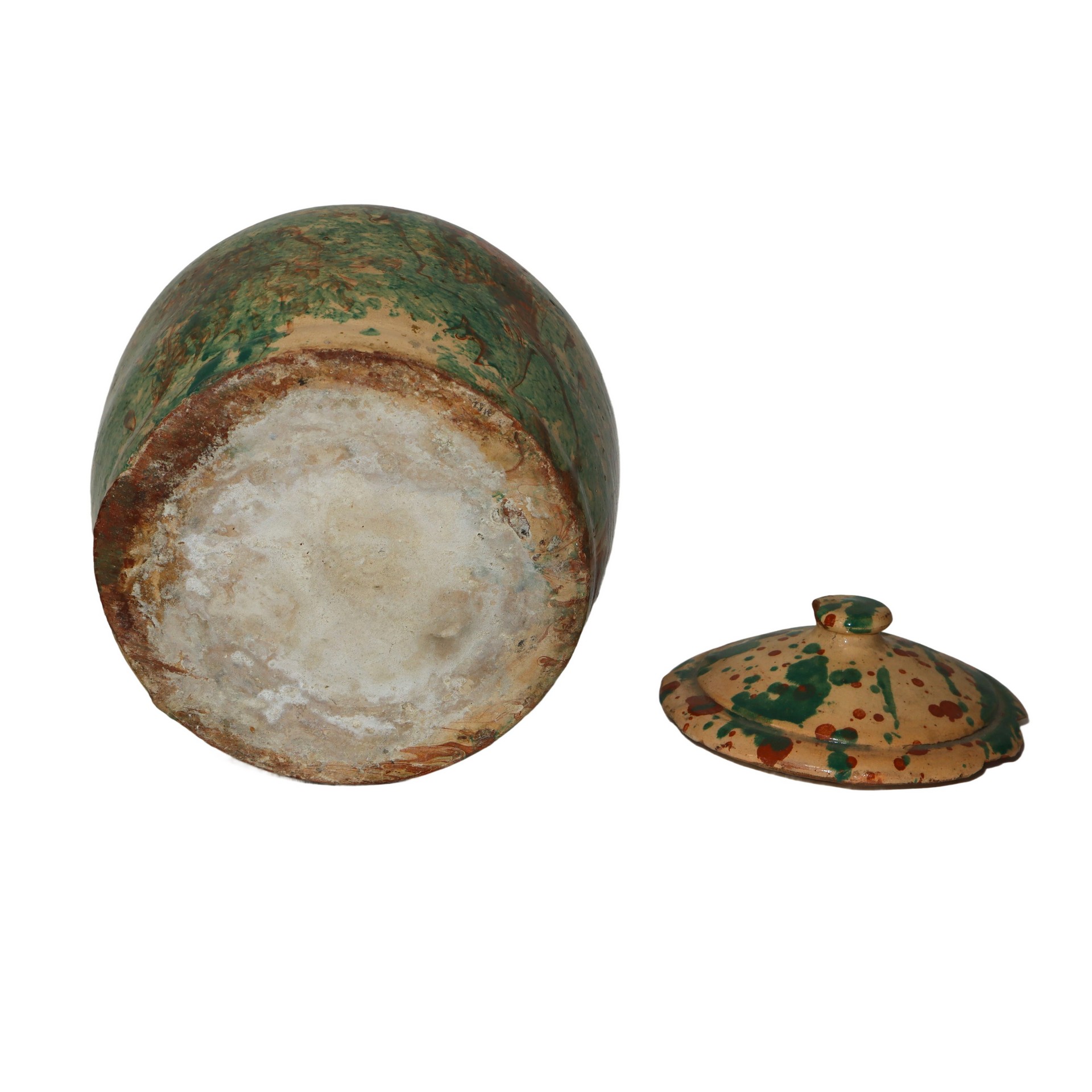 Saliera in terracotta di Caltagirone invetriata e smaltata, effetto marmorizzato, 20° secolo h cm 19 , diametro cm 18
