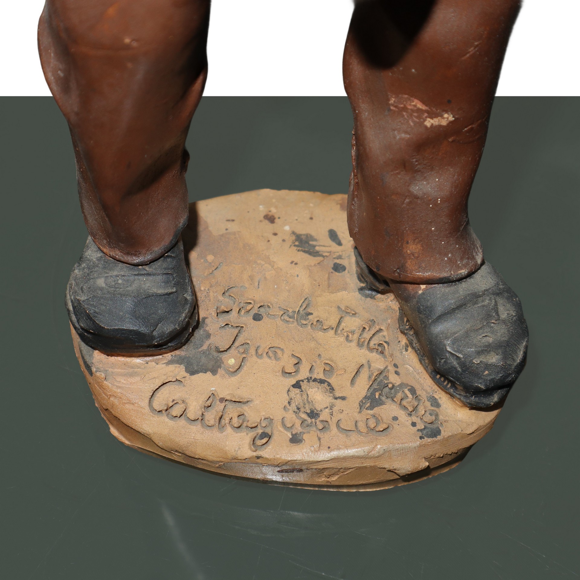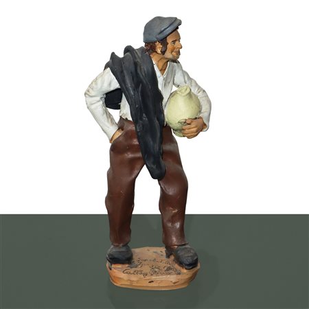 Pastore con quartara in ceramica di Caltagirone h cm 29 Firmato Ignazio Mario Scarlatella Firmato Ignazio Mario Scarlatella
