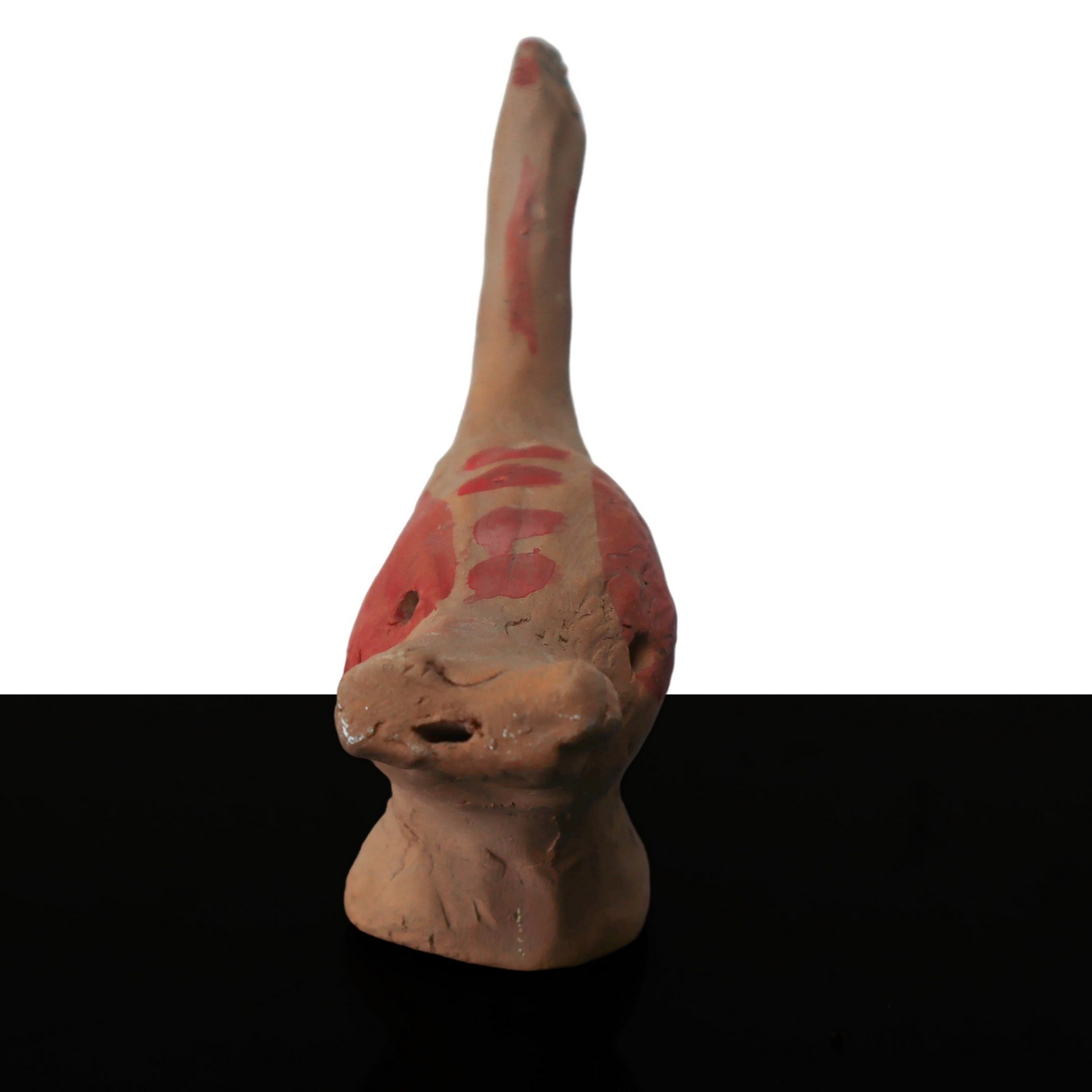 Fischietto a guisa di uccello nei toni marrone e rosso 11.5 x 14 cm