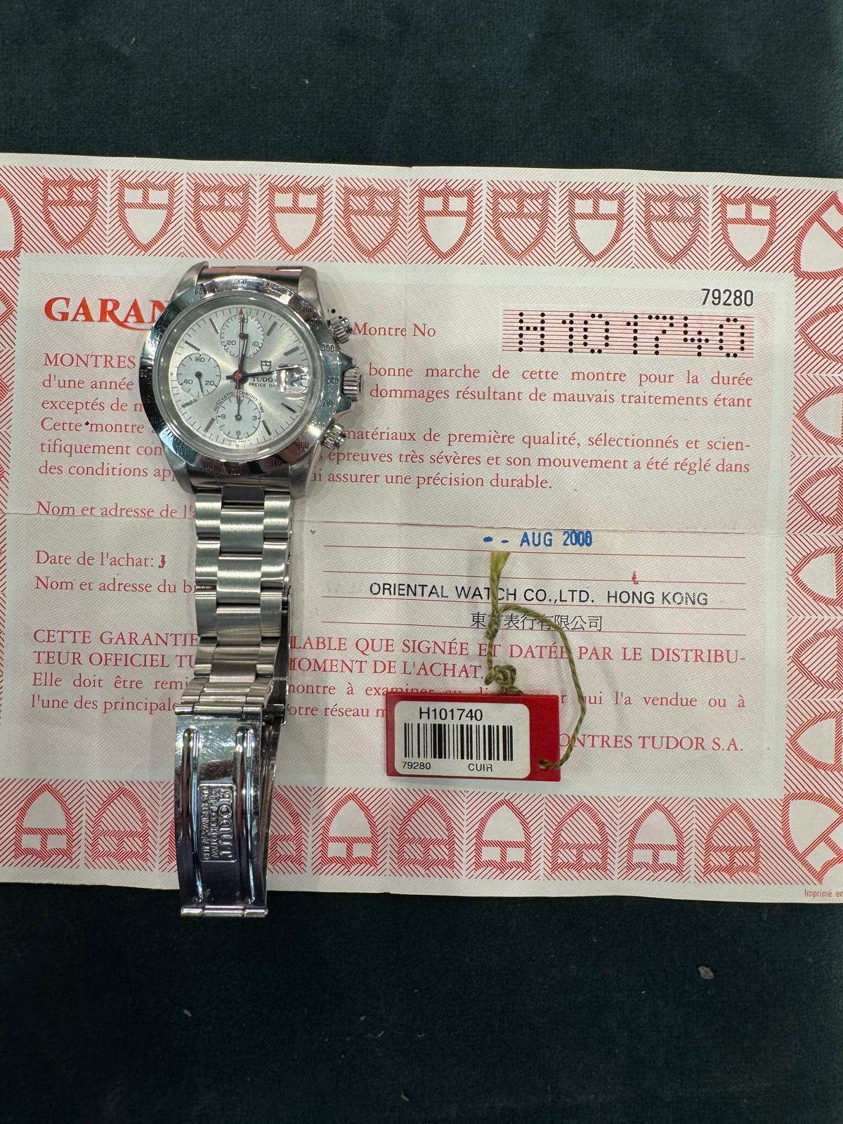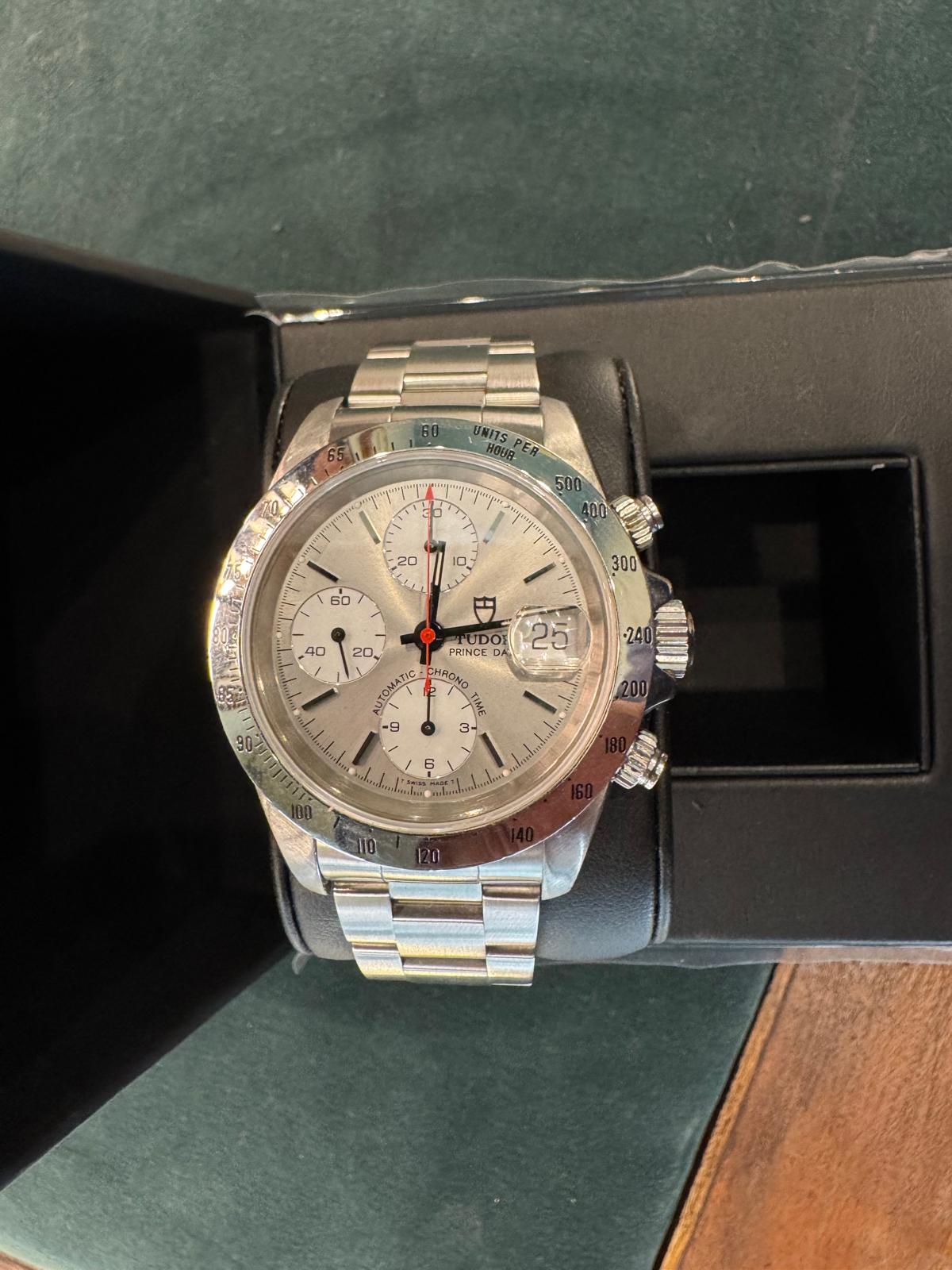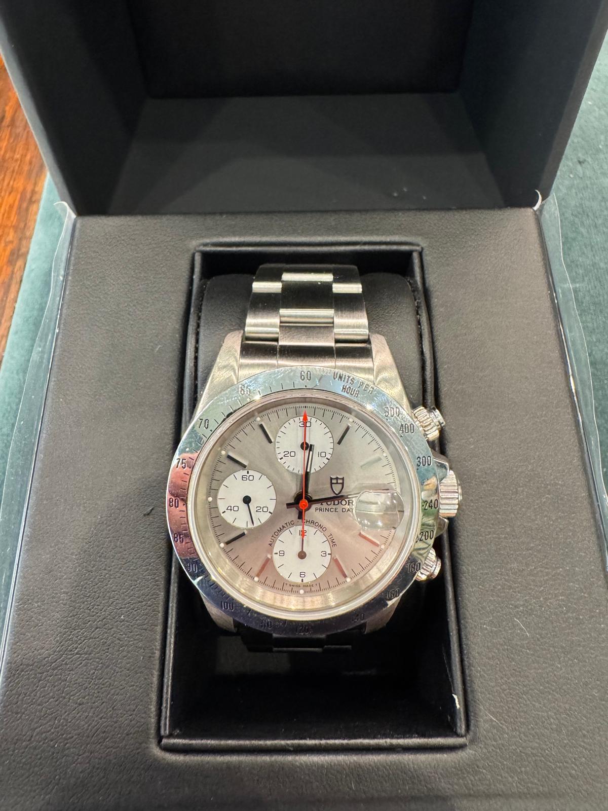 Marca Tudor Modello (Orologio) Prince Date Numero di referenza 79280 Carica Automatico Materiale della cassa Acciaio Materiale cinturino Acciaio Anno di produzione 2000 Condizione ottimo Corredo documenti originali, no box Carica Automatico Diametro 40 mm Impermeabile 10 ATM Materiale lunetta Acciaio Vetro Vetro zaffiro Quadrante Nero Cinturino Materiale cinturino Acciaio Colore cinturino Acciaio Chiusura Déployante Materiale chiusura Acciaio - COMMISSIONE D’ASTA 25%