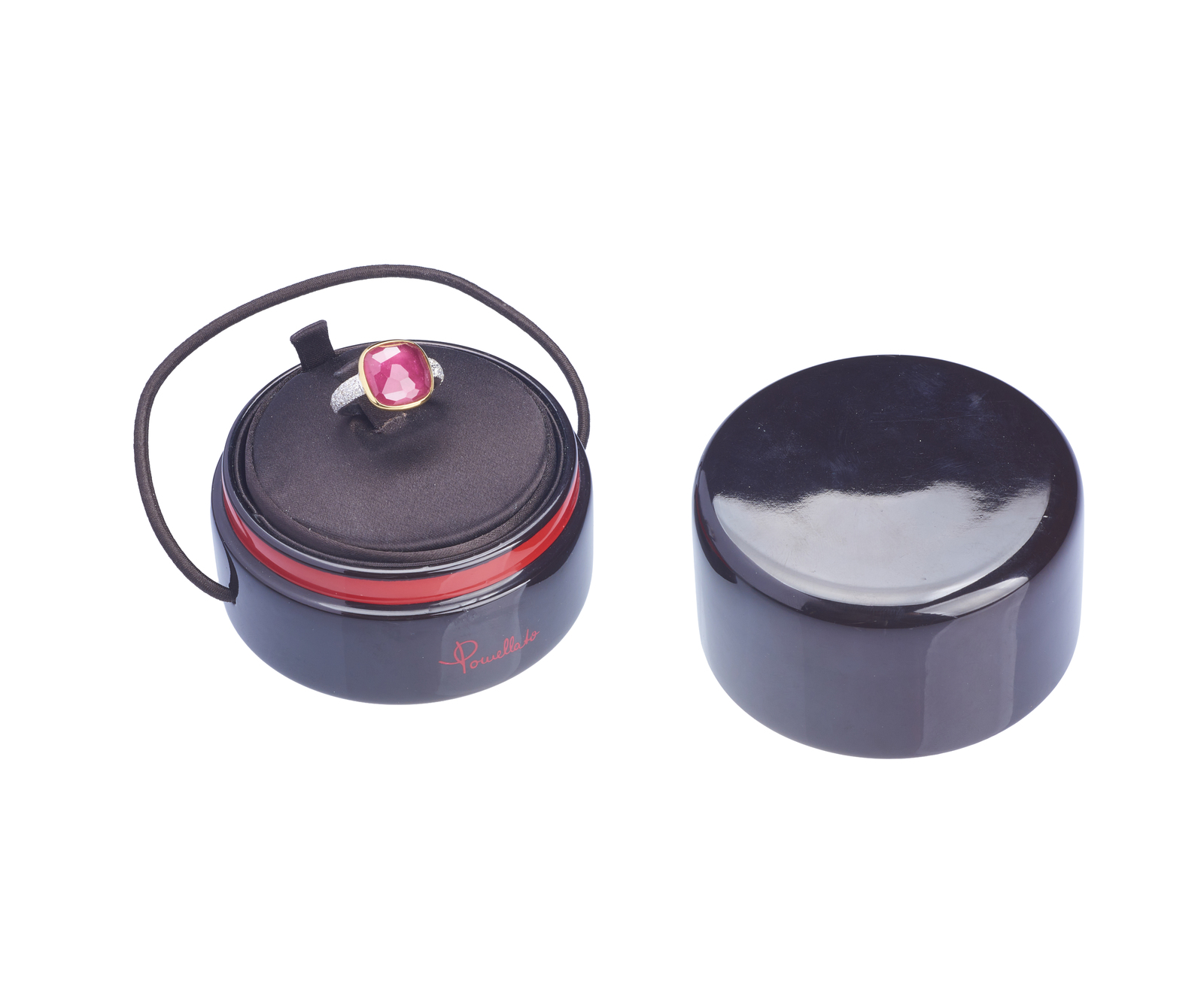 POMELLATO - Anello in oro bianco e giallo 18k con tormalina rossa centrale e diamanti bianchi.