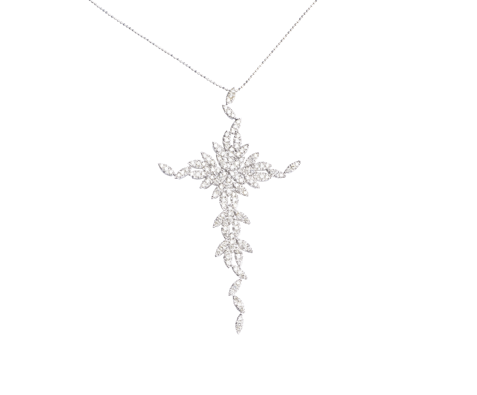 Collana in oro bianco 18k con croce snodata con diamanti bianchi . . Cm 5,00 x 8,50. Diamanti bianchi: 3.15 ct. circa tot.