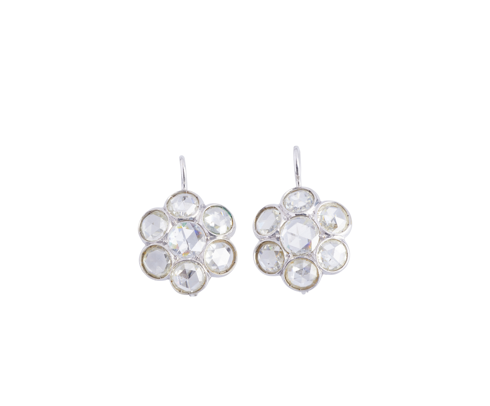 - Orecchini in oro bianco e brillanti taglio a rosetta 4 ct. circa .