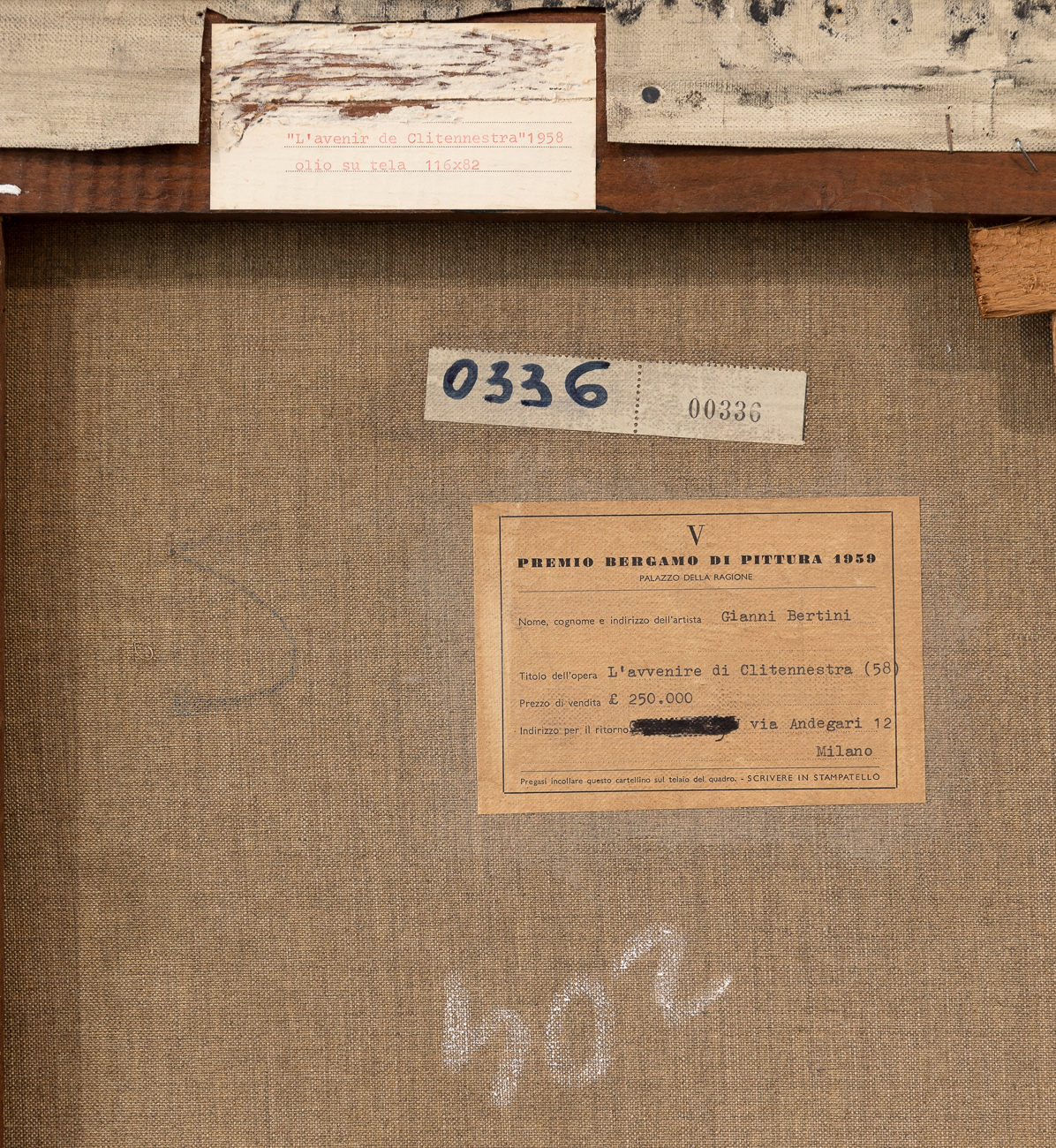 Etichetta del Premio Bergamo di Pittura del 1959