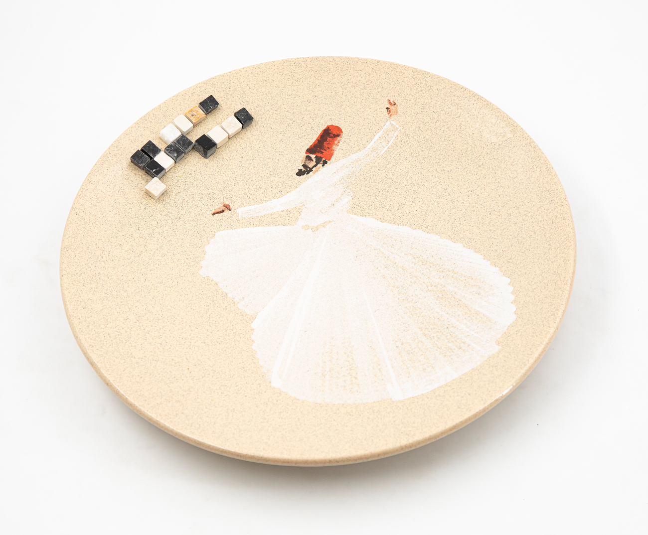 Maiolica dipinta con inserti in mosaico di pietra