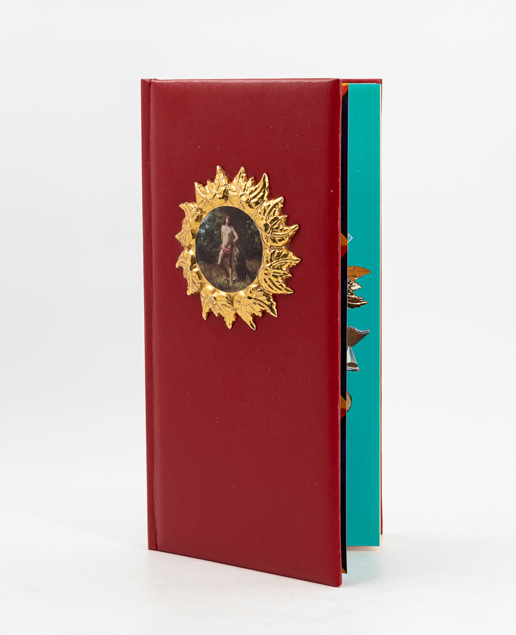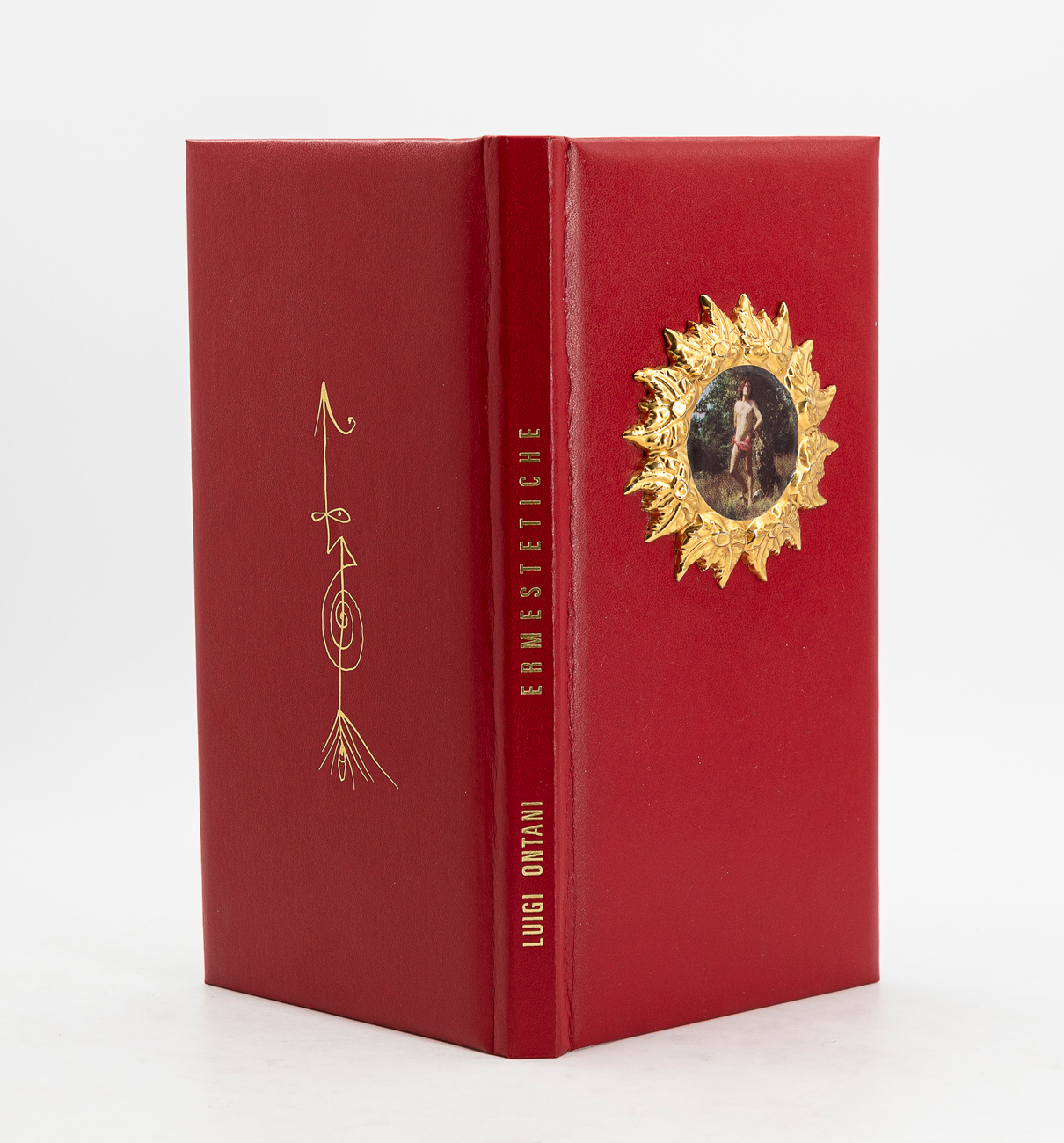 Il presente esemplare reca applicazione di un elemento scultoreo dorato sulla copertina, con riproduzione di una fotografia dell'Artista al centro