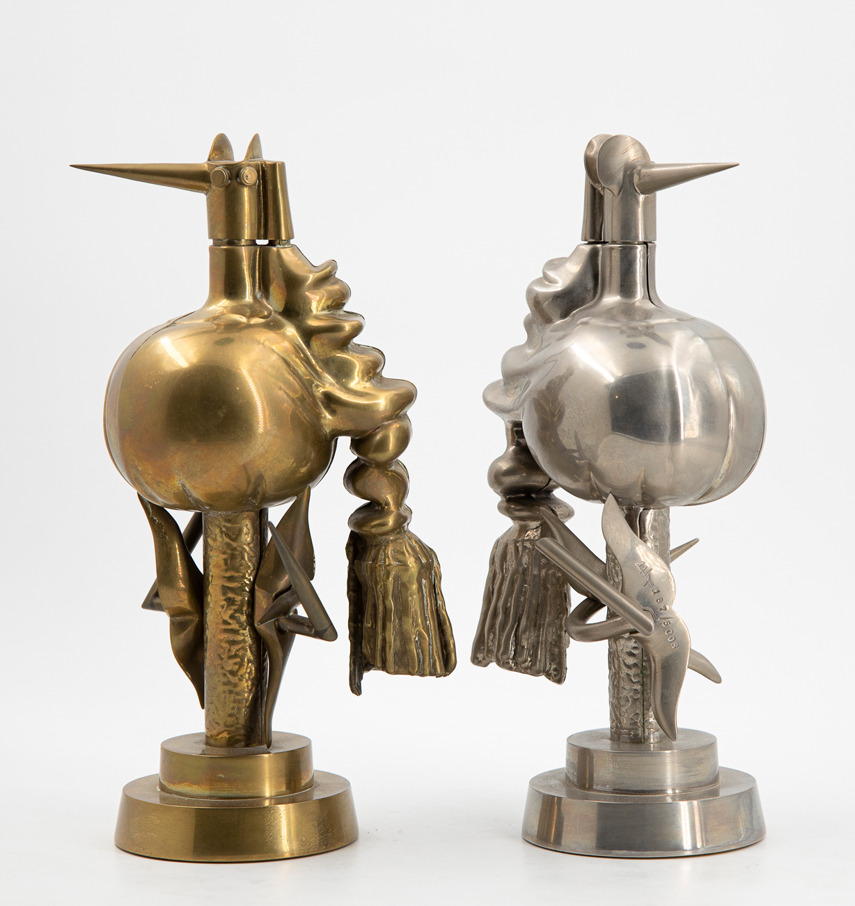 Due sculture in ottone e ottone cromato