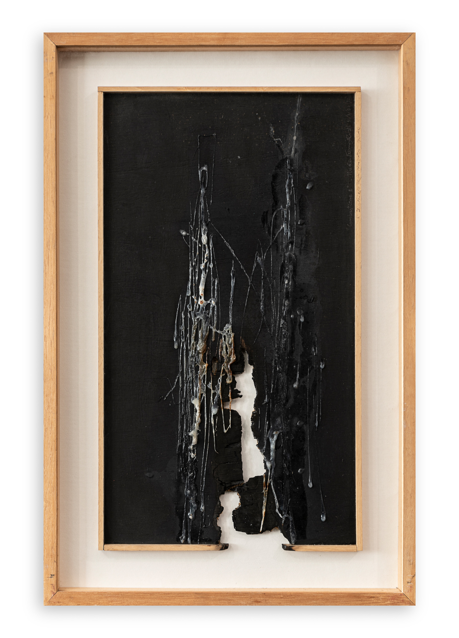 Tecnica mista su tavola combusta