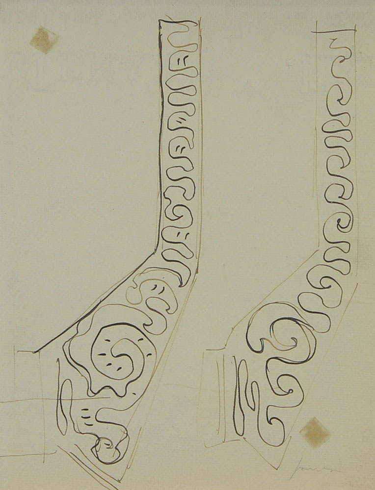 Fontana Lucio Due Studi, 1952 inchiostro su carta applicata su tela, cm. 28x22 firmato in basso a destra, opera anchiviata presso la Fondazione Lucio Fontana al numero di catalogo 52 DAD 7