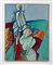 I soggetti di Prica hanno un legame intimo e soggettivo con la natura: egli opera ispirato da una razionalità che ancora il gesto creativo alle leggi fondamentali della vita, attribuendo all’opera un significato che va oltre il vissuto individuale. La sua pittura non si limita a un’imitazione naturalistica, si fa trasfigurazione lirica, intrecciando simboli, memoria e mitologia in un dialogo autentico tra arte e vita. Negli anni Settanta Prica concentra la sua ricerca sulla dimensione umana, protagonista di composizioni intense e profondamente evocative: il segno si anima, lo spazio si apre al dialogo con la materia, e la figura si fa veicolo per indagare identità ed esistenza, in un equilibrio sottile tra forma e intuizione. Tutto ciò emerge in Costa dell’Est, opera emblematica di questa fase matura. Le figure, stilizzate e fluide, si fondono con il paesaggio marino in una composizione dinamica e vibrante carica di tensione lirica tra astrazione e memoria del reale. Il segno frammentato e dinamico, i colori intensi e le strutture compositive testimoniano quella ricerca di equilibrio tra impulso emotivo e costruzione formale, che caratterizza la piena maturità dell’artista. Cornice presente