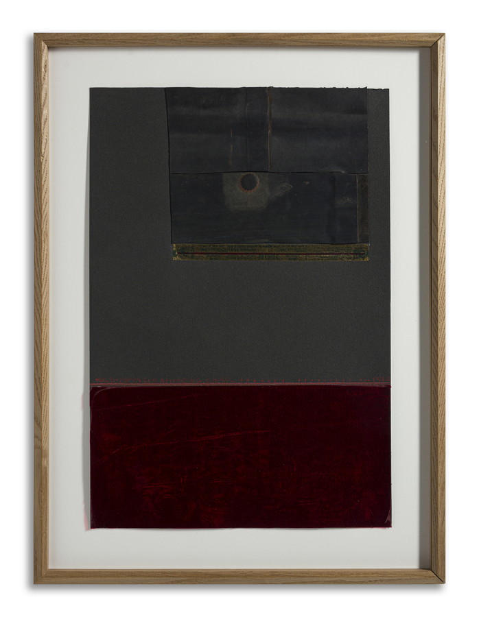 RAMA CAROL (1918 - 2015) SENZA TITOLO (1977 circa). 1977. camere d’aria, nastro autoadesivo trasparente, pastello e pellicola di materiale plastico trasparente su cartoncino nero. Cm 33,70 x 49,80. firma e dedica ad personam datata 1977