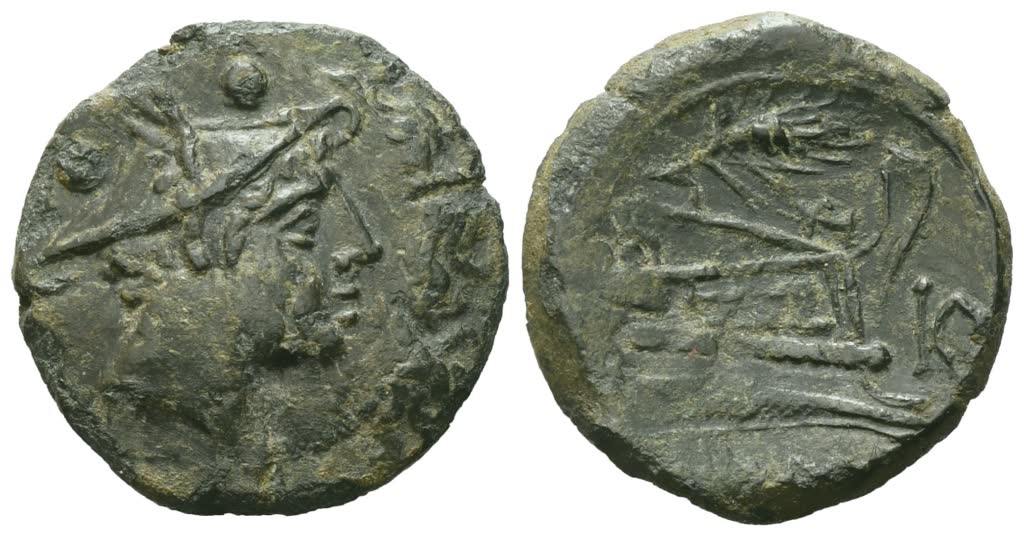 Anonymous, Sextans, c. 211-208 BC; Æ (5,3 g; 19,8 mm; 12 h)