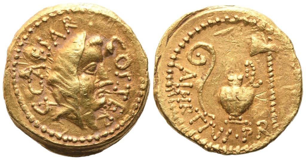 C. Iulius Caesar, Aureus, 46 BC; AV (7,94 g; 19,5 mm; 8 h)