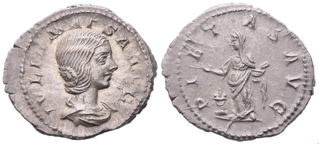 Julia Maesa, Denarius struck under Elagabalus, Rome, 222-224; AR (2,84 g; 20,3 mm; 12 h)
