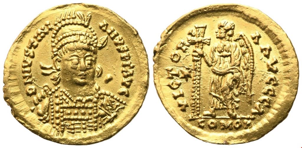 Ostrogoths, Athalaric (526-534), Solidus in the name of Justinian I, Rome; AV (4,27 g; 20,8 mm; 6 h)