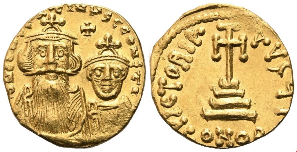 Lot 505 | Constans II (641-668) with Constantine IV, Solidus, Constantinople; AV (4,37 g; 18,7 mm; 7 h)