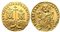 +IHS XPS REX – REGNANTIYM* Christ enthroned facing, with crossed nimbus, raising r. hand in blessing and holding Book of Gospels in l. hand; Rv. BASILIOS ET CONSTANT AYGG B Facing busts of Basil, on l., and Constantine, on r., both crowned and wearing loros and chlamys respectively and holding between them a patriarchal cross. DO 2a. SB 1704. Good extremely fine.