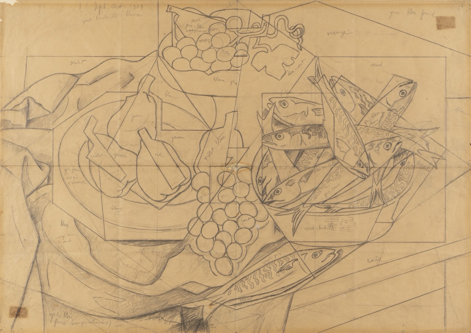 Gino Severini (Cortona 1883 - Parigi 1966) - Tracciato per "Natura morta con pesci", 1919