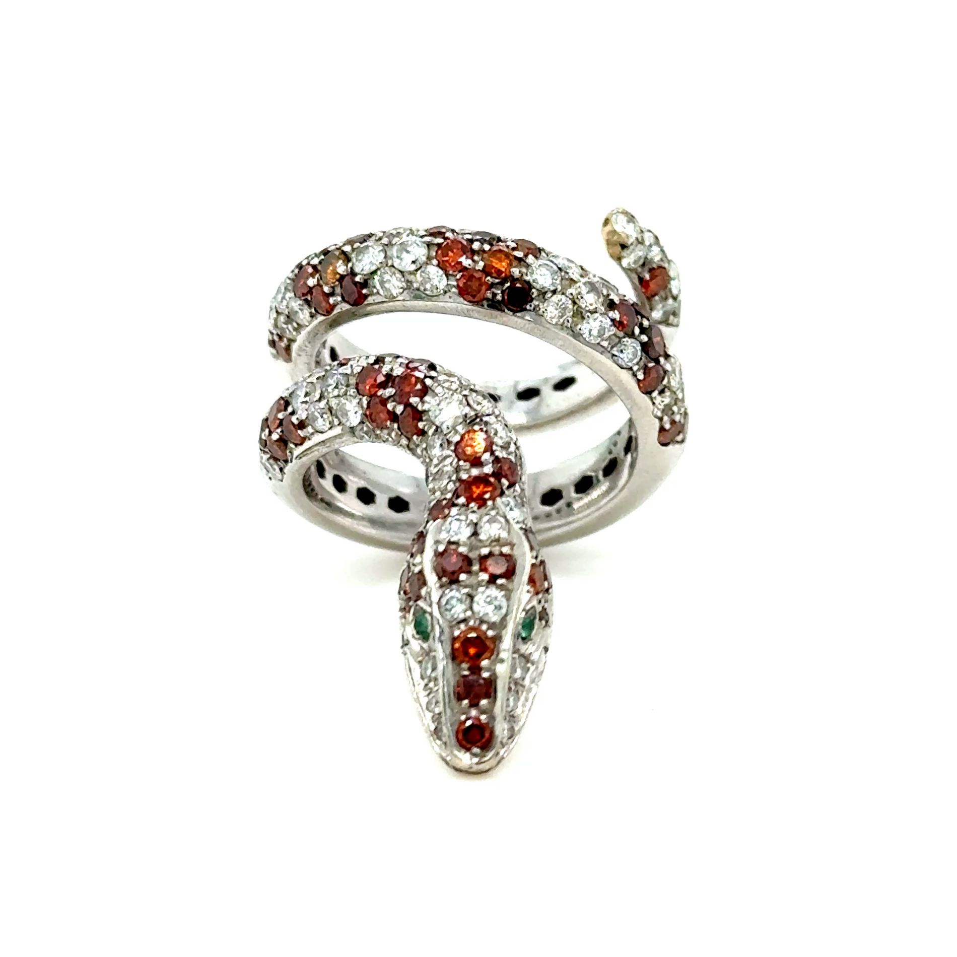 ANELLO SERPENTE IN ORO BIANCO 18K 14,63 GRAMMI CON DIAMANTI NATURALI 1,60 CT COLORE F PUREZZA SI E DIAMANTI COLORATI PER 1,40 CT PUREZZA VS-SI - MISURA 56 - DN-RS - COMMISSIONE D’ASTA 25%