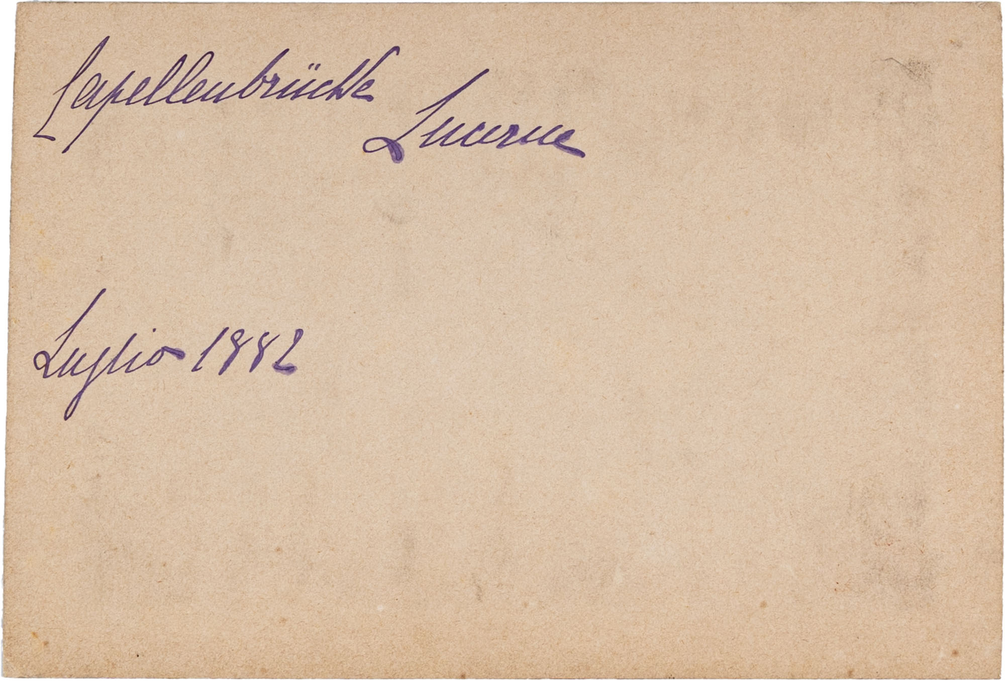 Fotografia del ponte pedonale coperto in legno - Lucerna - Kapellbrucke1882Fotografia albumina d'epocaDimensioni foto: 10 x 15,5 cm ca.Dimensioni cartoncino rigido: 12 x 17,5 cm ca.Condizioni generali molto buone