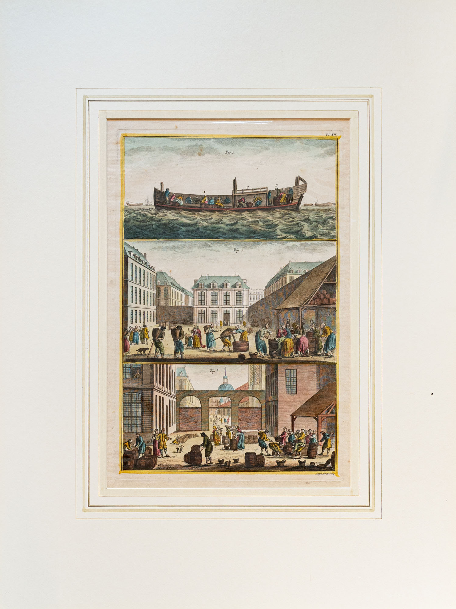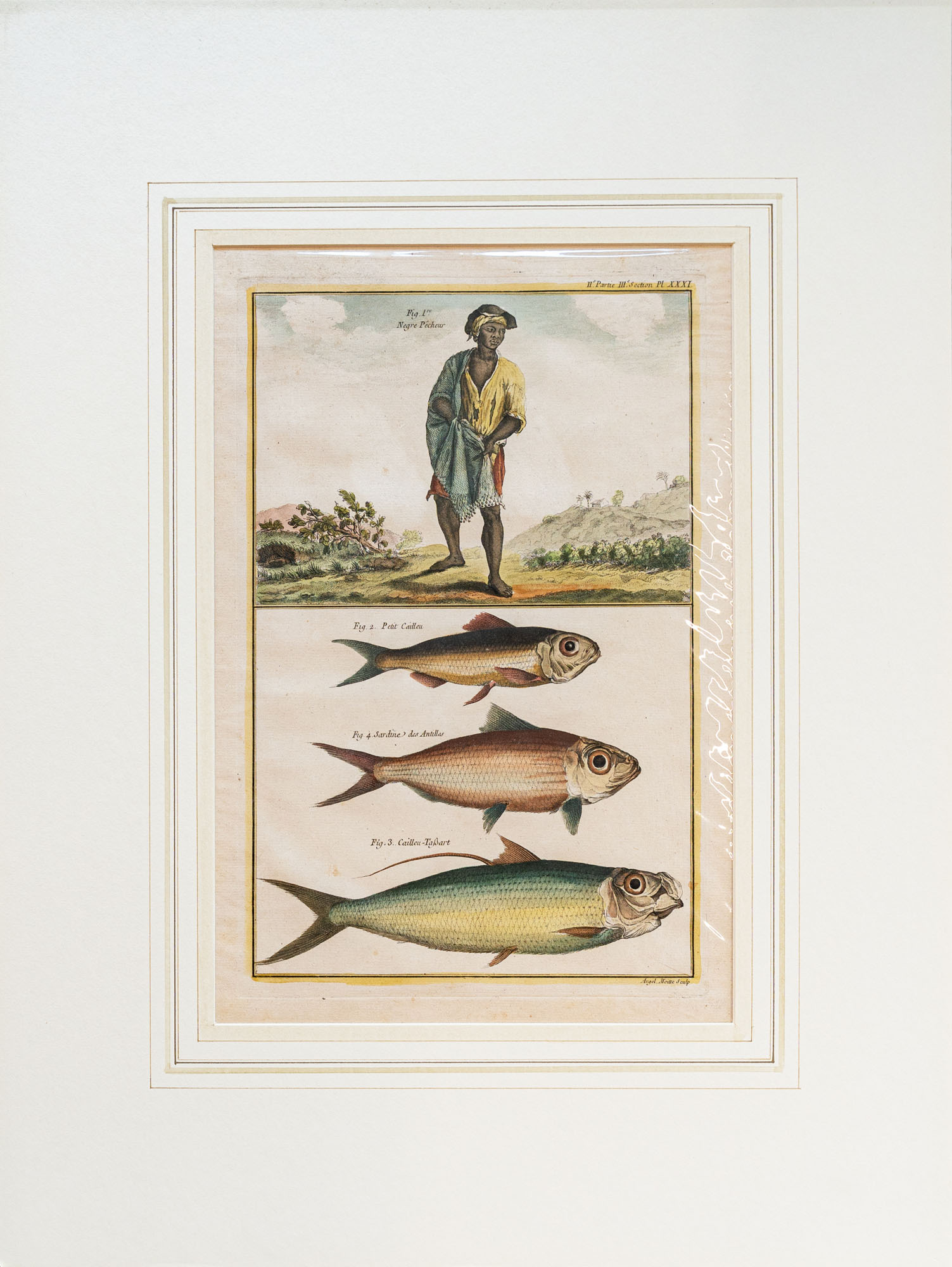 A. Moitte - 9 Incisioni su rame, raffiguranti pesci e pesca colorate a manoStampe con passepartoutCm.42,5 x 27,5Condizioni ottime