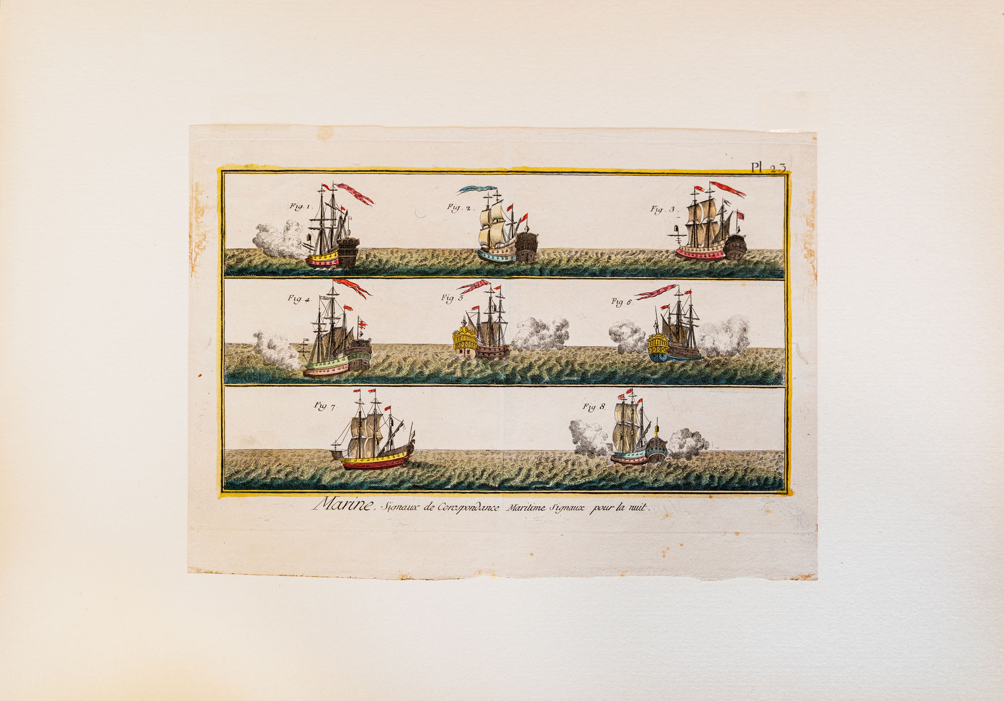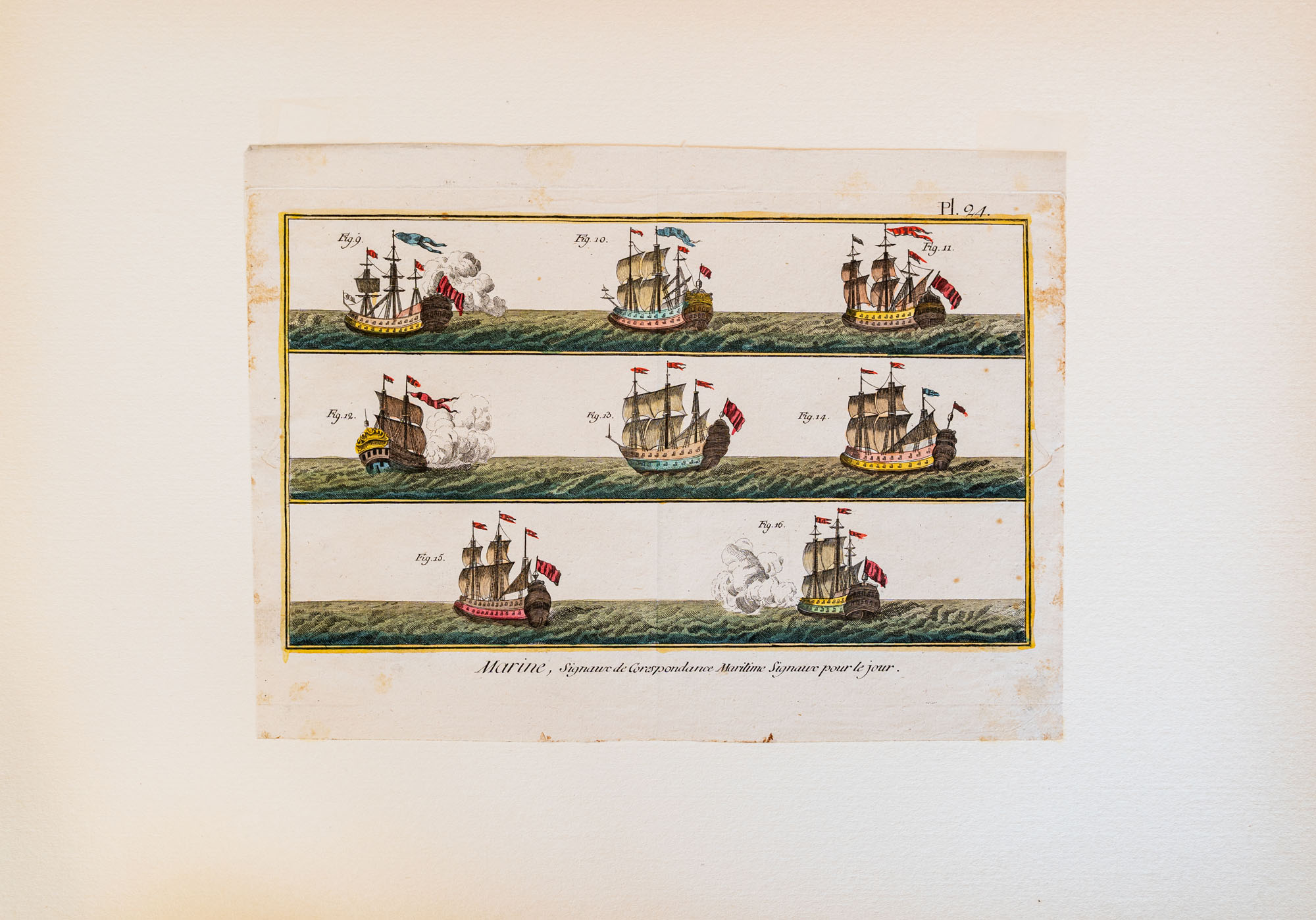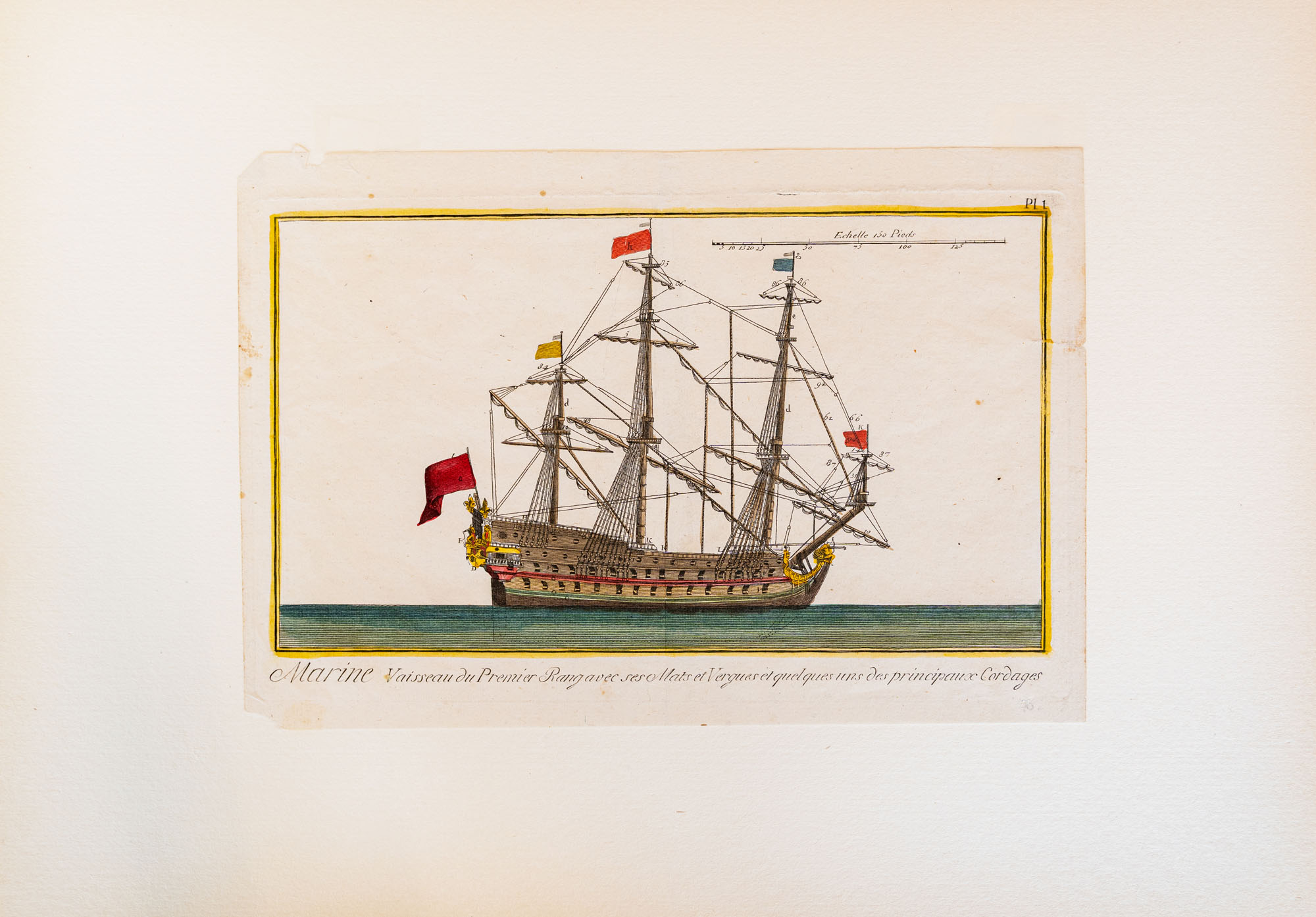 Lot 99 | 7 stampe di navi18° secoloColorate a mano, con passepartoutVarie...