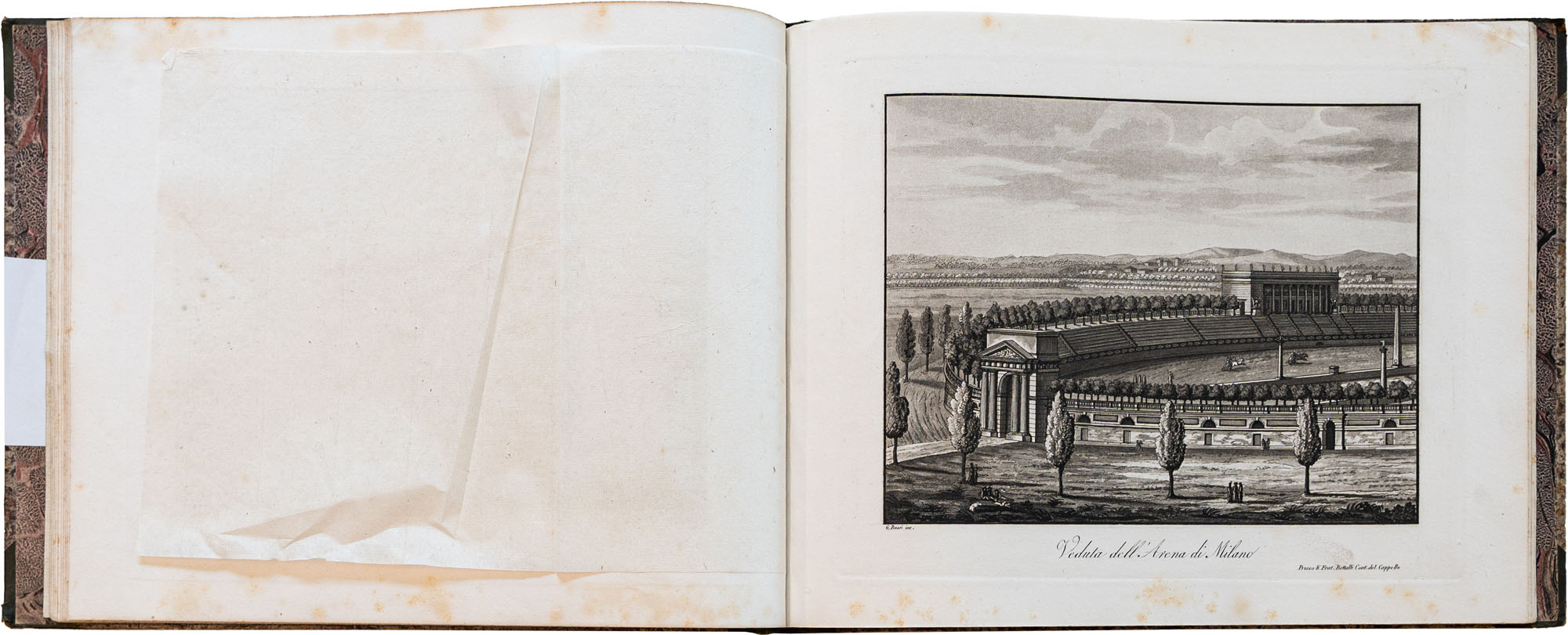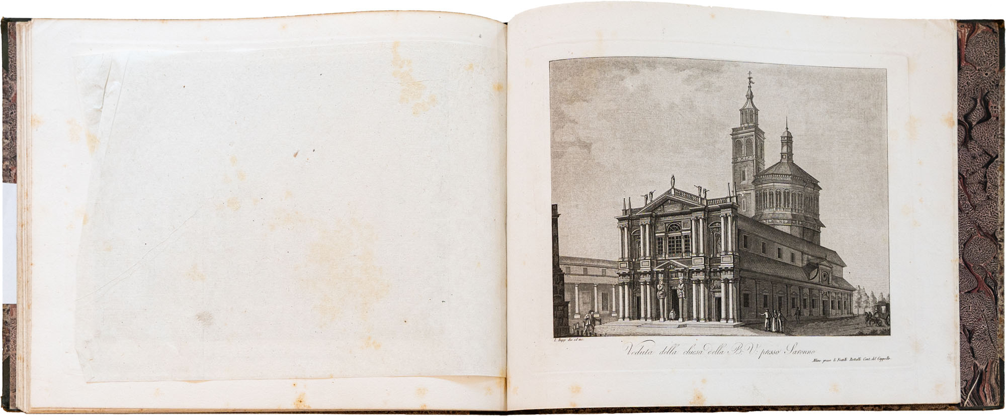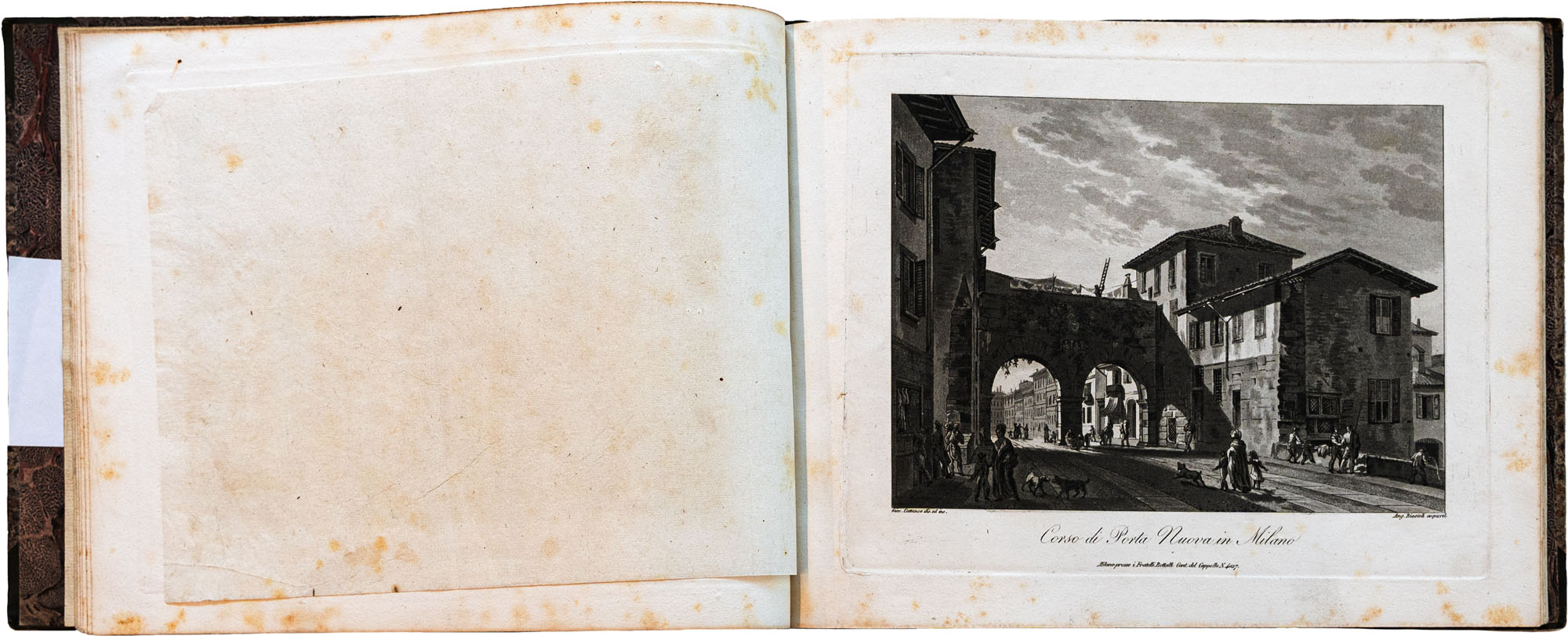 Raccolta di 20 vedutePrimi decenni 19 ° secoloAcquaforte-acquatinta, di monumenti di città di cui: 13 di Milano, autori Bussi, Cattaneo; Angeli, Biasioli - 1 di Pavia, - 1 di Monza - 1 di Como, Bussi e Landini - 1 di Rho, Rupp e Landini - 1 di Saronno, Rupp - 1 di Genova, Garibbo e Landini e 1 di Roma, Bussi.Presso Fratelli Bettalli Milano, Legatura coeva in cartonatoDimensioni cm.27 x 21,5Condizioni ottime