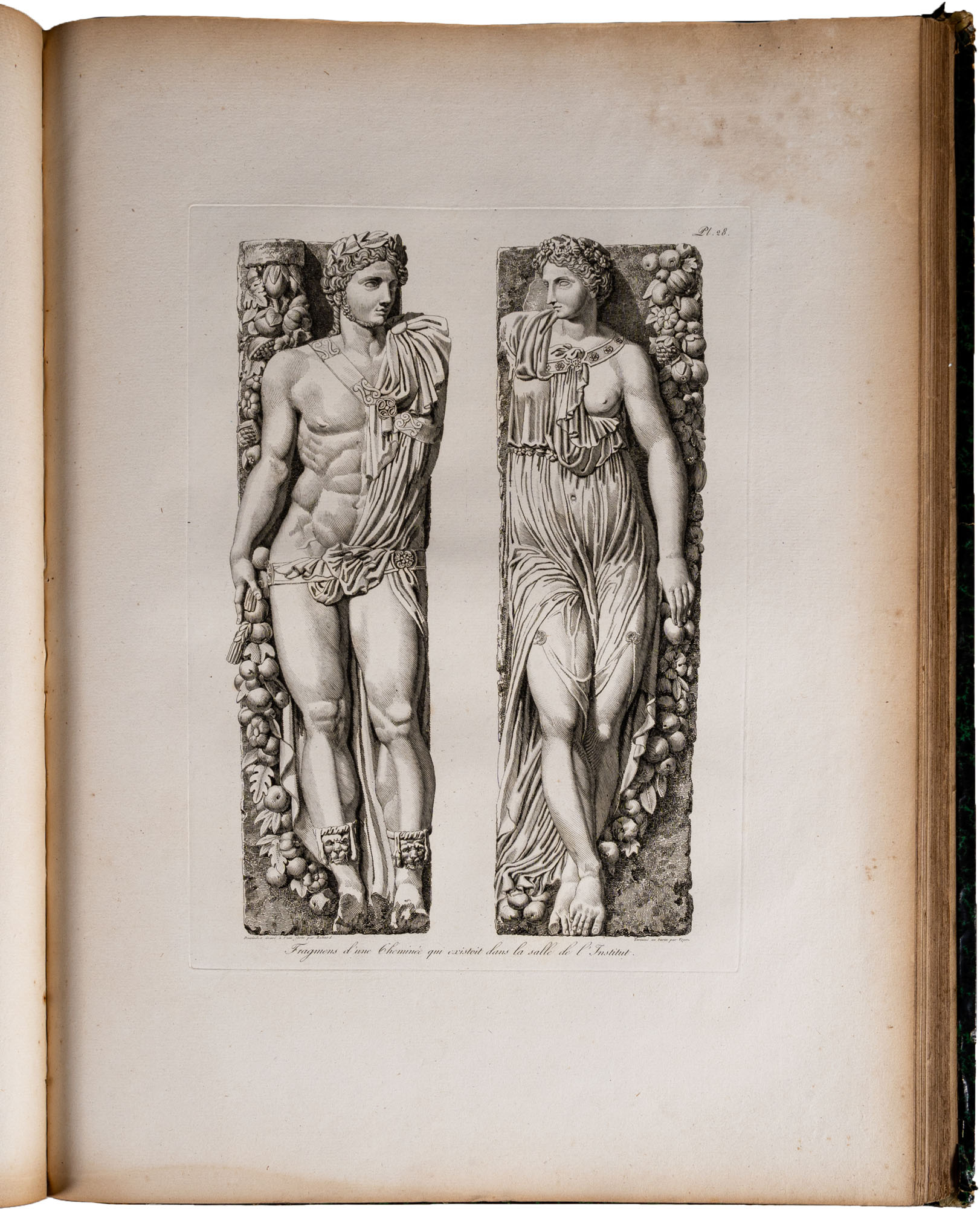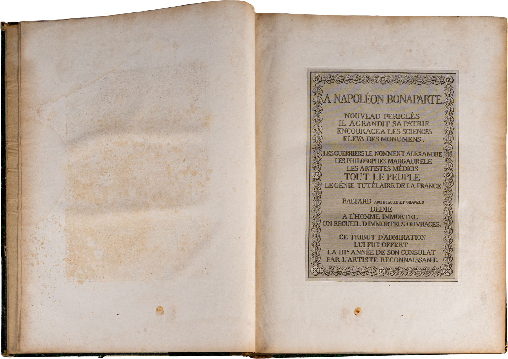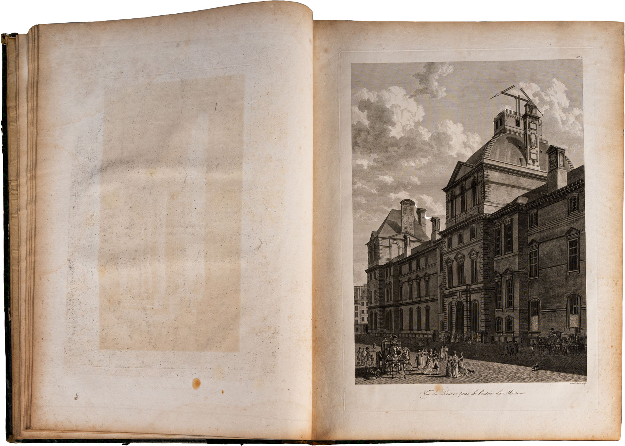 BALTARD - PARIS ET SES MONUMENS, MESURÉS, DESSINÉS ET GRAVÉS PAR BALTARD (ARCHITECTE). AVEC DES DESCRIPTIONS HISTORIQUES PER LE CIT. AMAURY-DUVAL. OUVRAGE DEDIÉ A NAPOLÉON BONAPARTEParis, CRAPELET, 1803-1805Due tomi rilegati in un volume, legatura in mezza pelle coeva, titolo e decorazioni oro al dorso, pp. 244 (complessive). In gran parte illustrato da incisioni a piena paginaIn-folio (mm. 625 x 455)Mancanze e segni d'uso al dorso e ai piatti, alcune fioritureTesto e illustrazioni in buono stato di conservazione