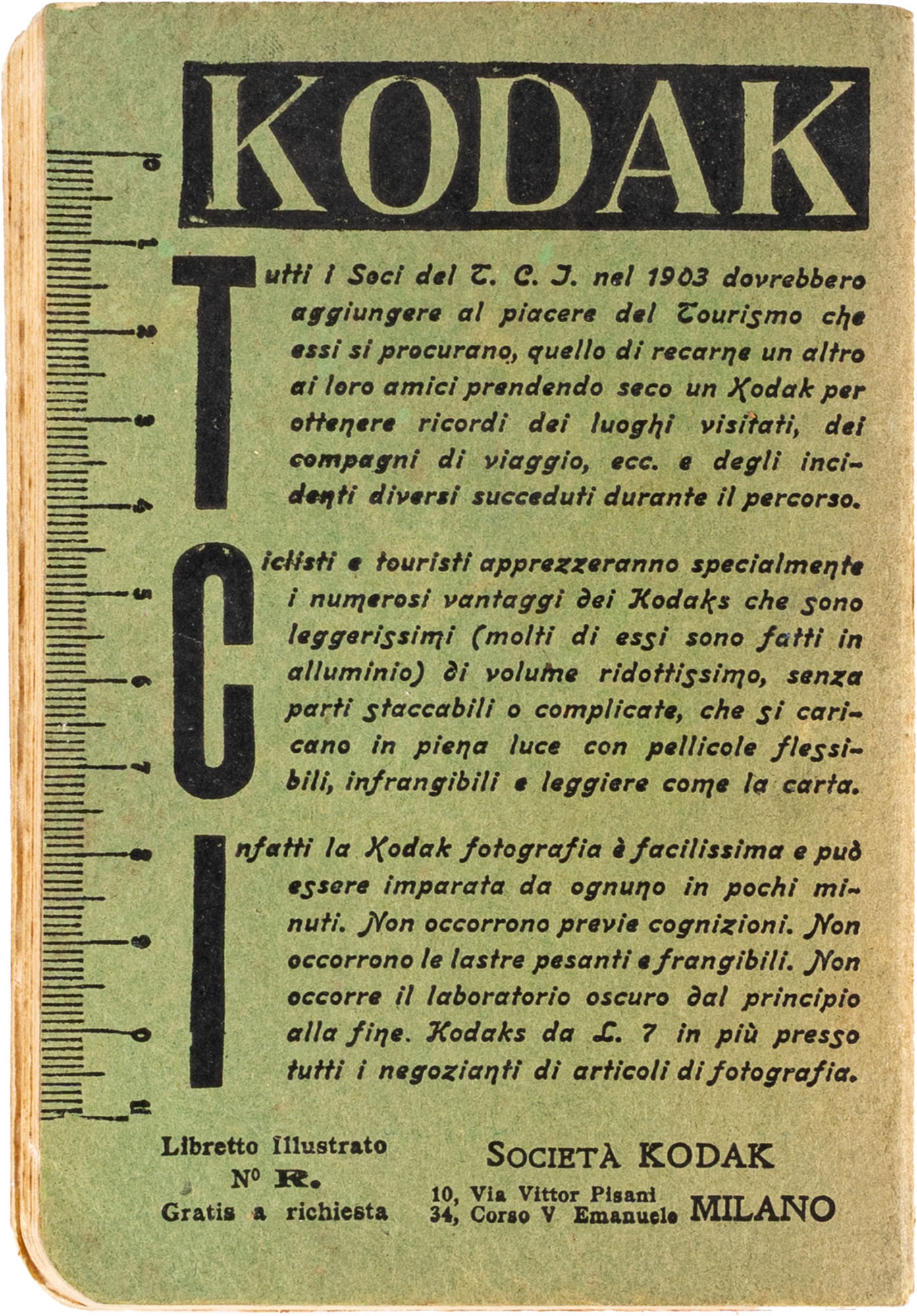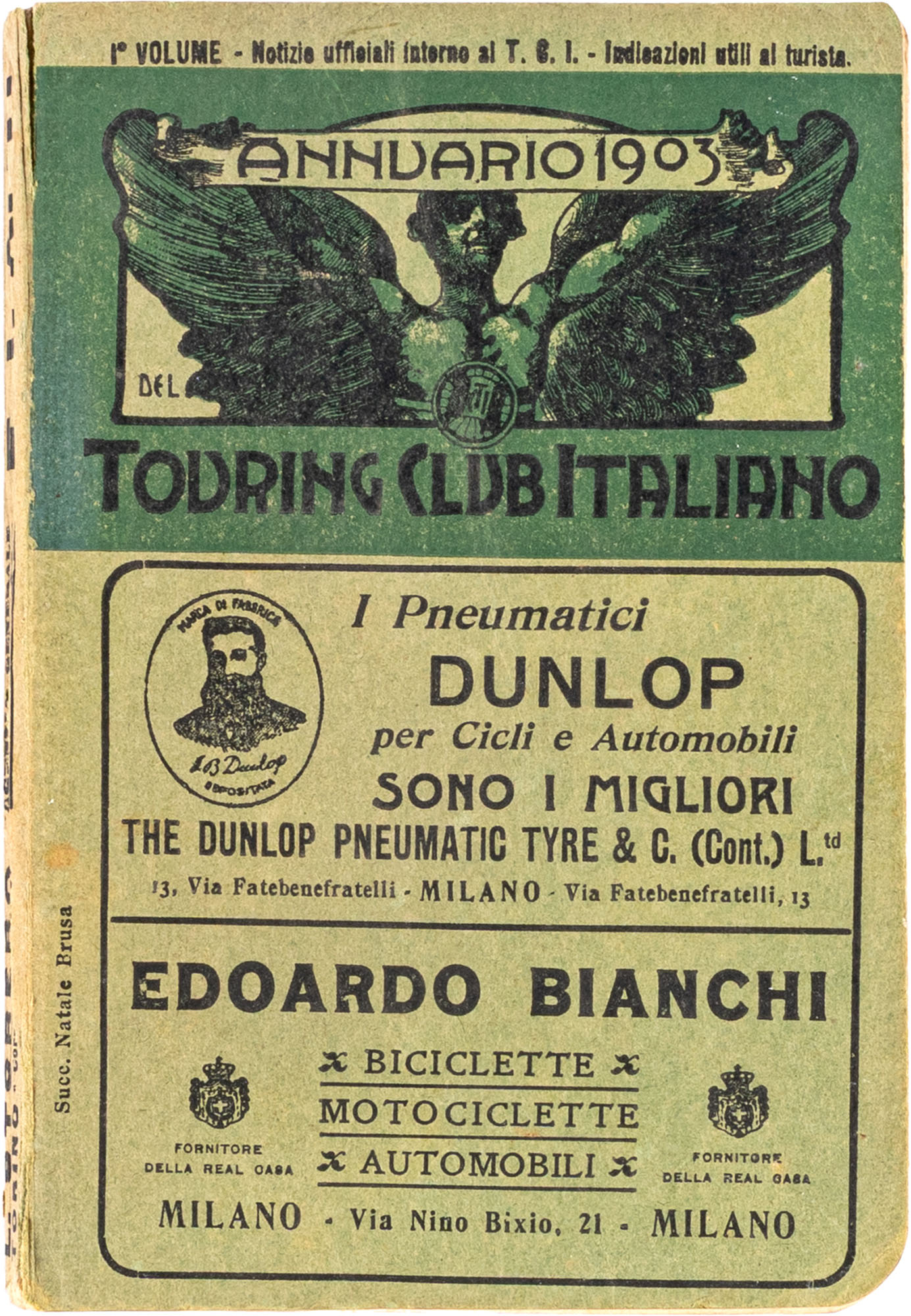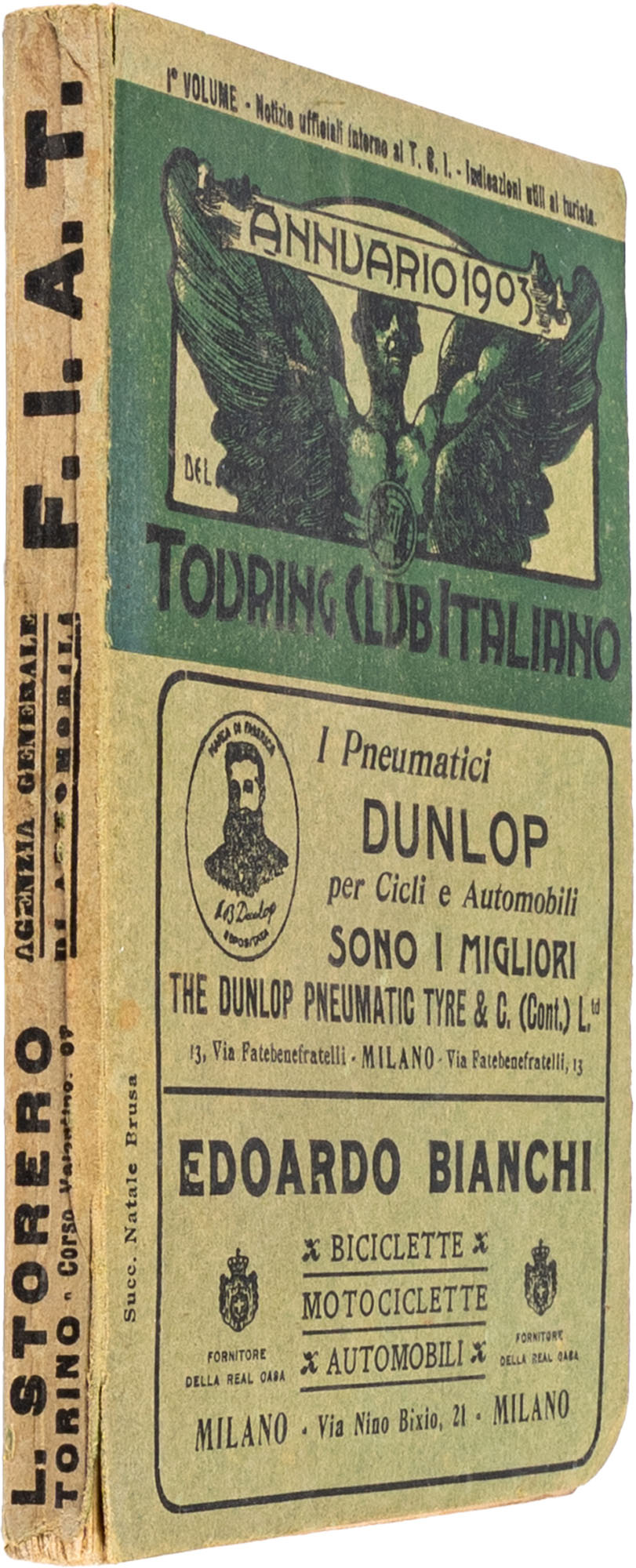 ANNUARIO 1903 DEL TOURING CLUB ITALIANOMilano, TOURING CLUB ITALIANO, 1903Legatura in brossura editoriale illustrata, pp. 298, con diverse illustrazioni in bianco e nero di pubblicità dell'epocaEsemplare in buono stato di conservazione