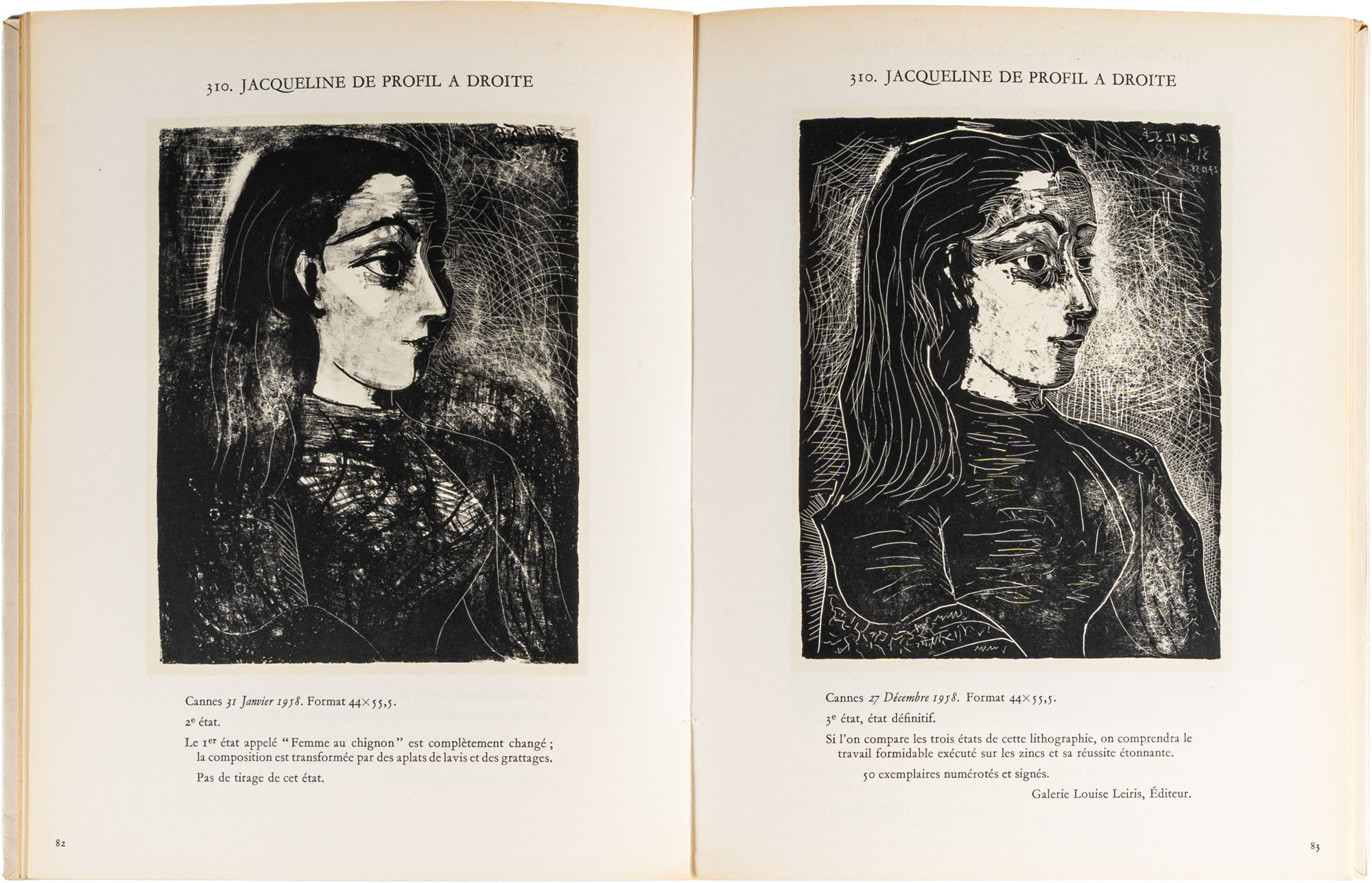 Picasso lithographe, IV: 1956 - 1963Prima edizione, ed. Sauret - Montecarlo, 1964Pp. 154. Notices et catalogue etablis par Fernand Mourlot. Con riproduzioni a colori e in b/n.e 2 litografie originali (copertina e frontespizio). Testo in francese4toCondizioni ottime